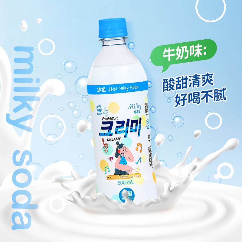 韩国进口熊津九日冰祖苏打水牛奶碳酸饮料汽水500ml*20瓶多种组合