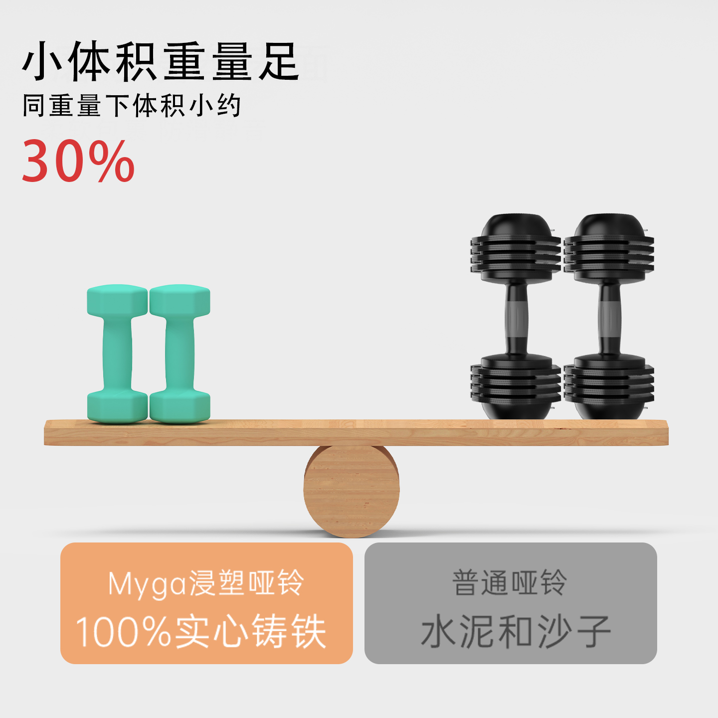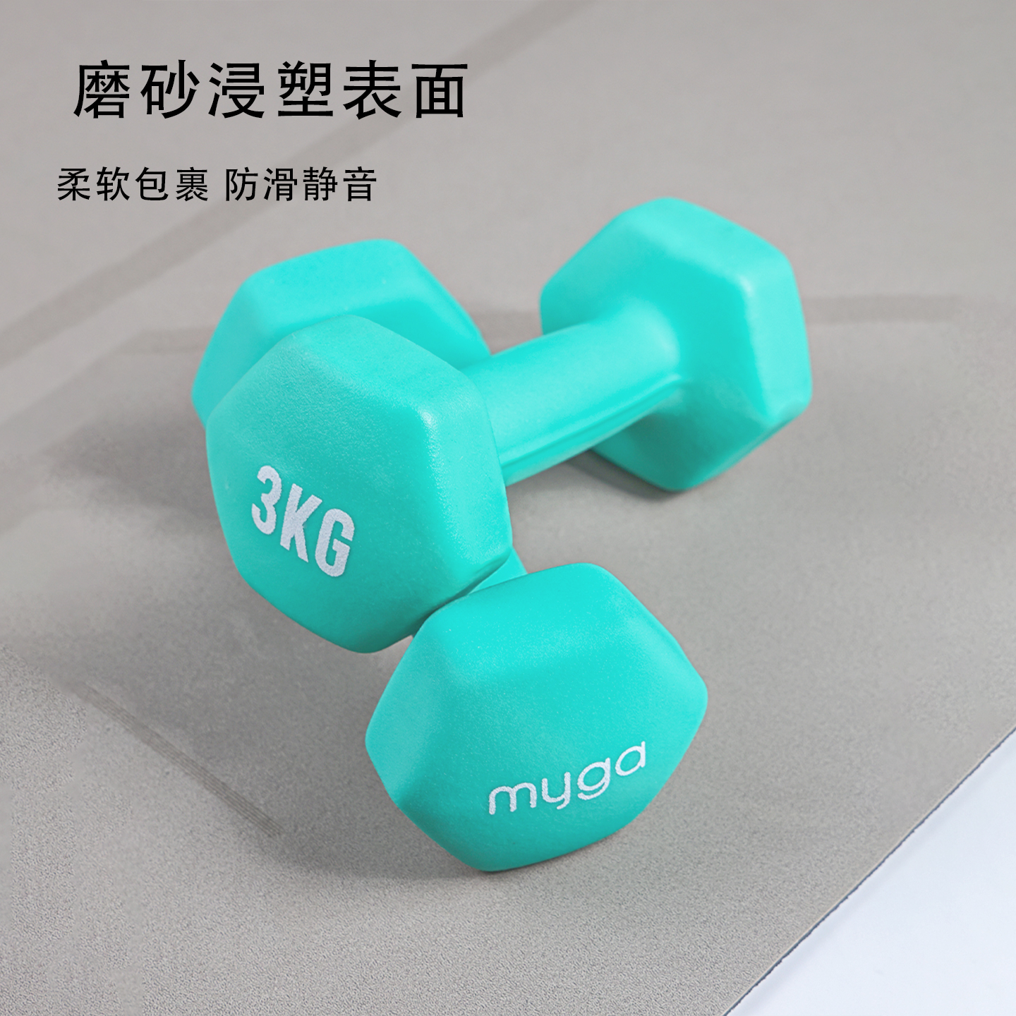 Myga浸塑哑铃小重量实心包胶铸铁哑铃女士儿童哑铃健身家用器材