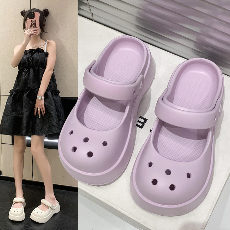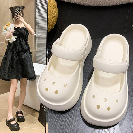 防滑拖鞋女夏外穿网红爆款增高洞洞鞋2025新款软底花园两穿沙滩鞋
