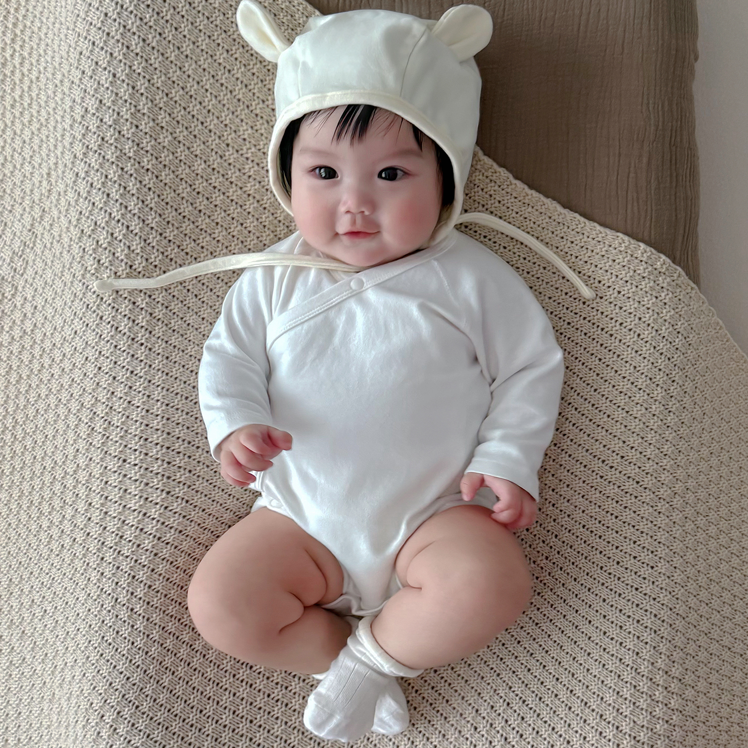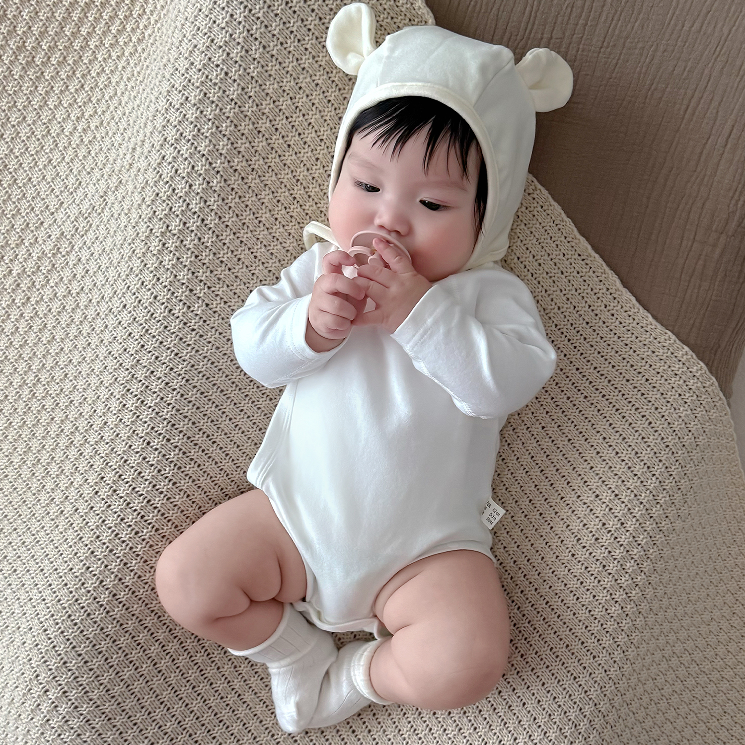 春秋季新生婴儿全棉偏襟和尚服连体哈衣白色男女宝宝长袖三角爬服