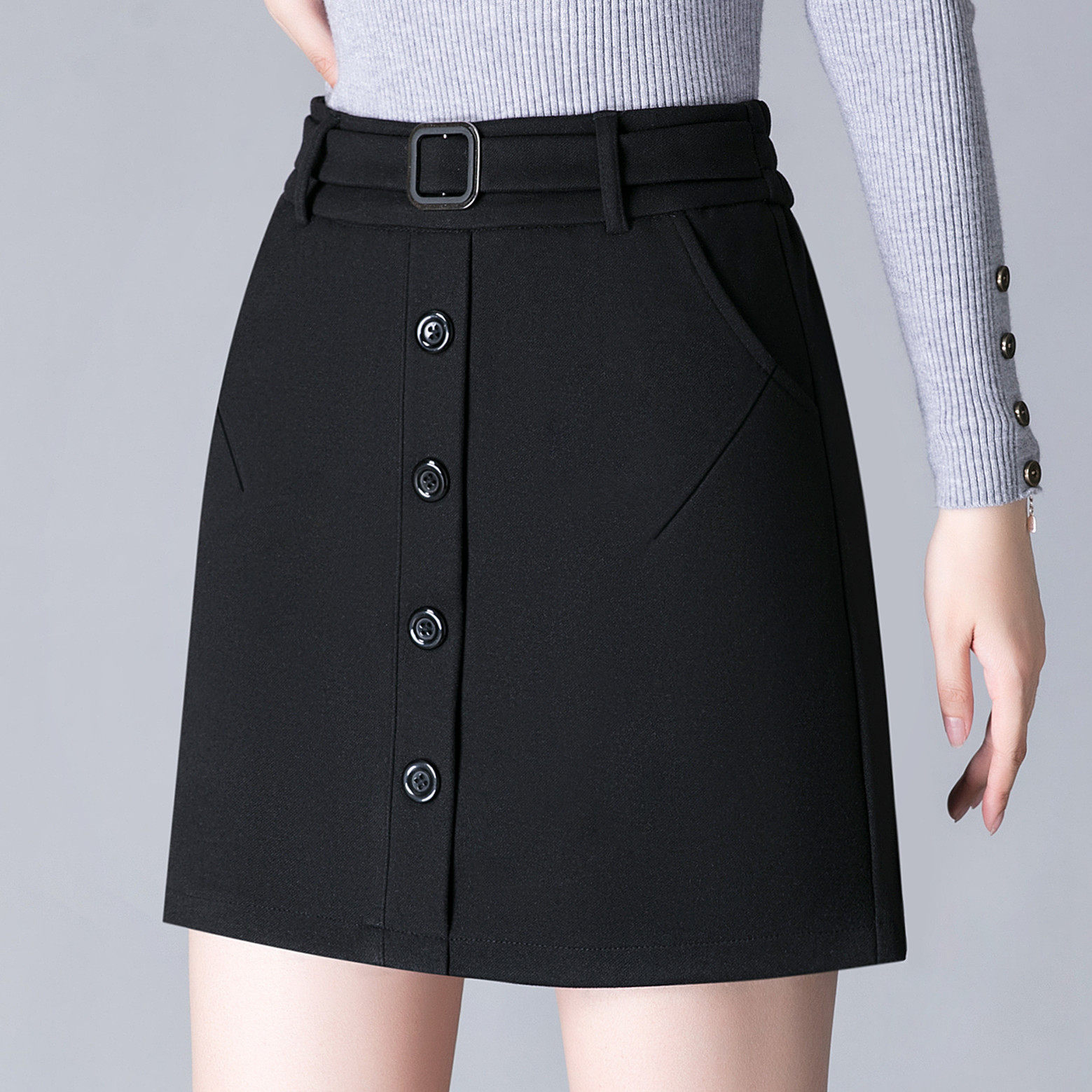 弹力短裙高腰显瘦百搭A字