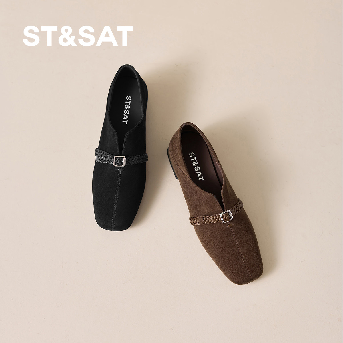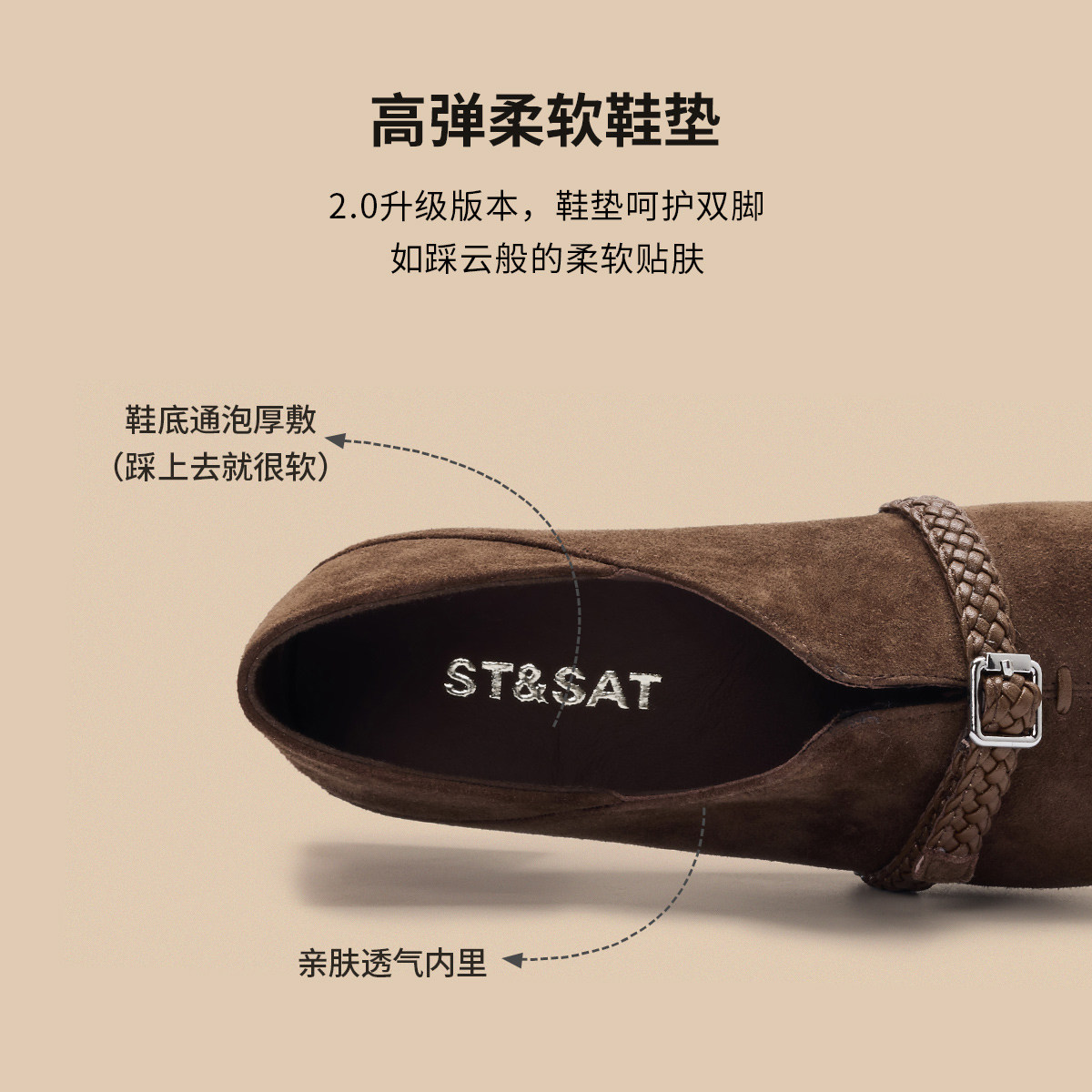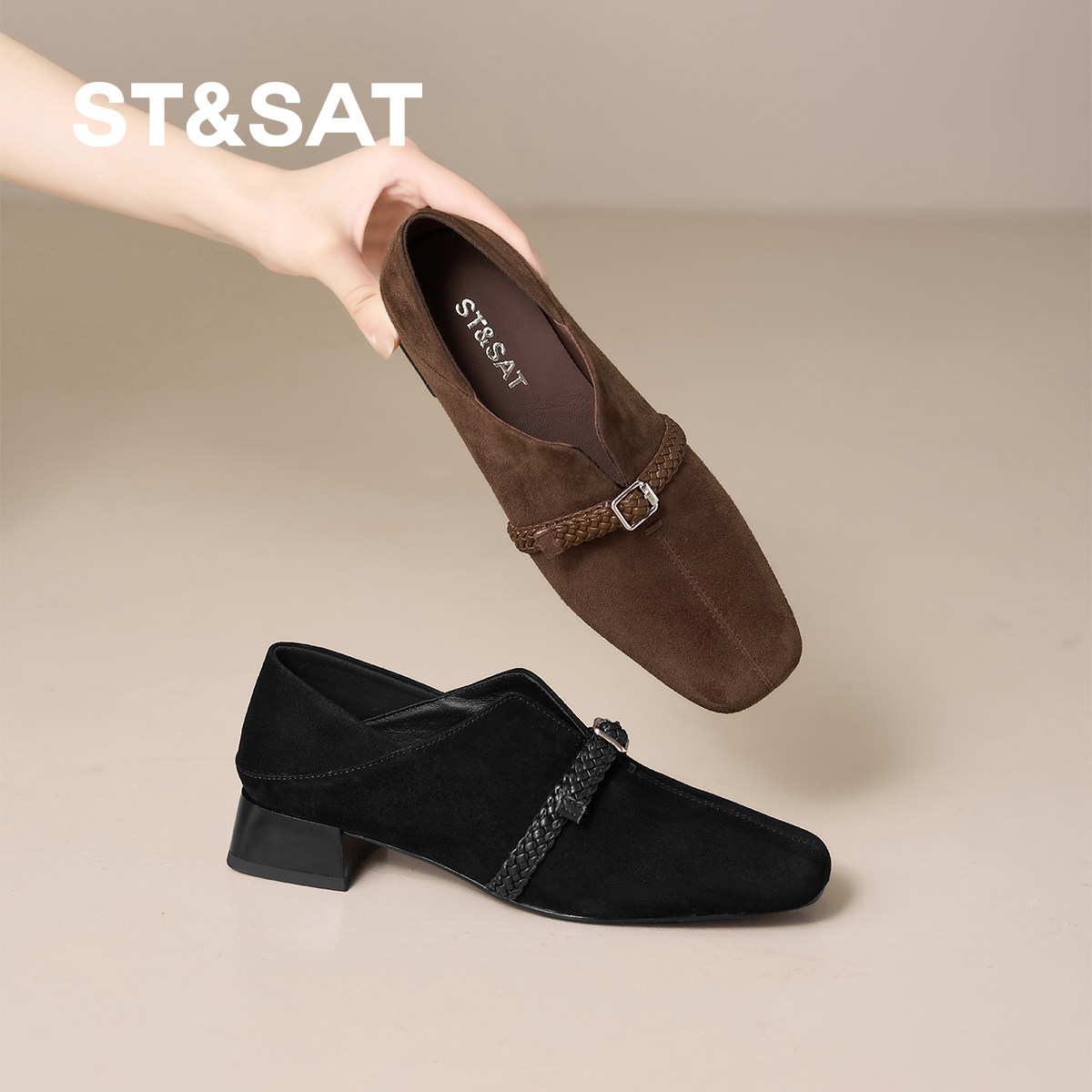 星期六2025新款复古方头深口单鞋女粗跟中跟一字带玛时尚通勤鞋