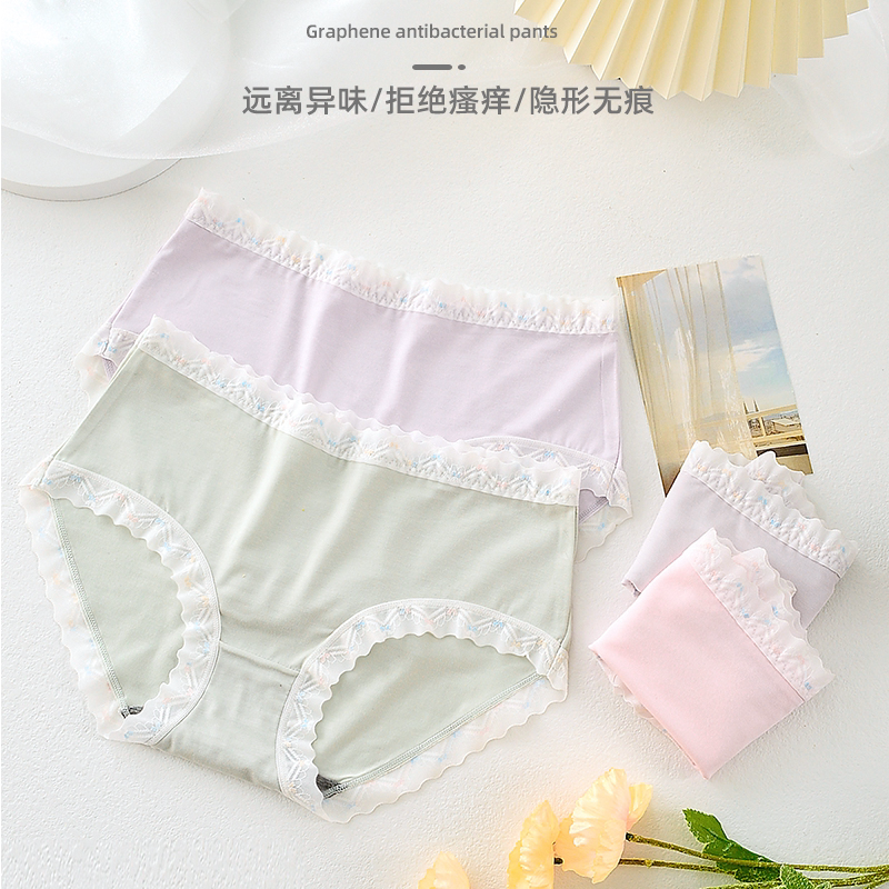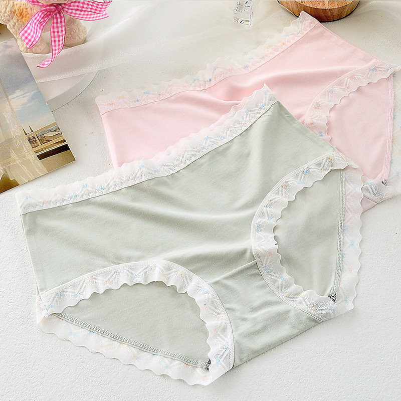新款中腰女士内裤透明蕾丝边大码