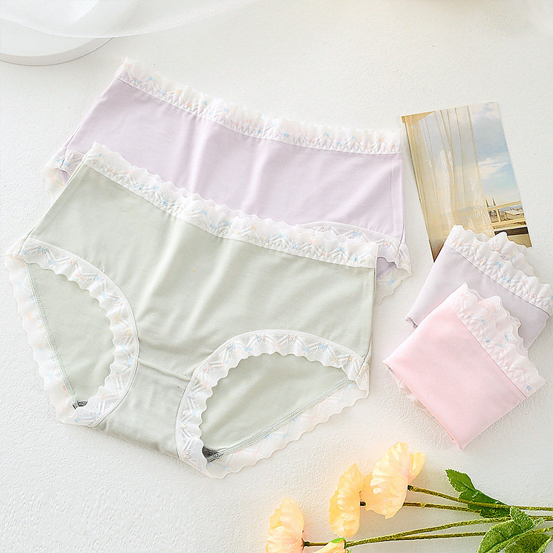 新款中腰女士内裤透明性感内裤女诱惑蕾丝边莫代尔舒适大码三角裤