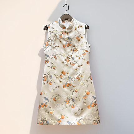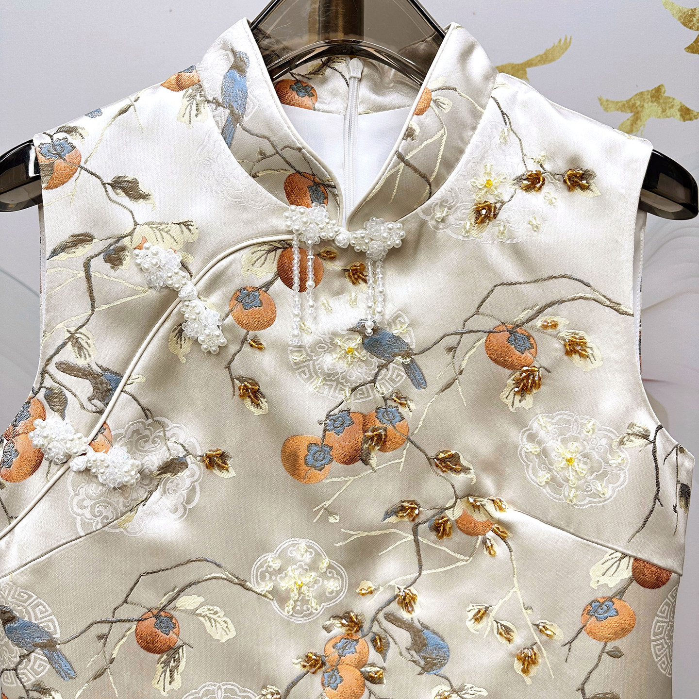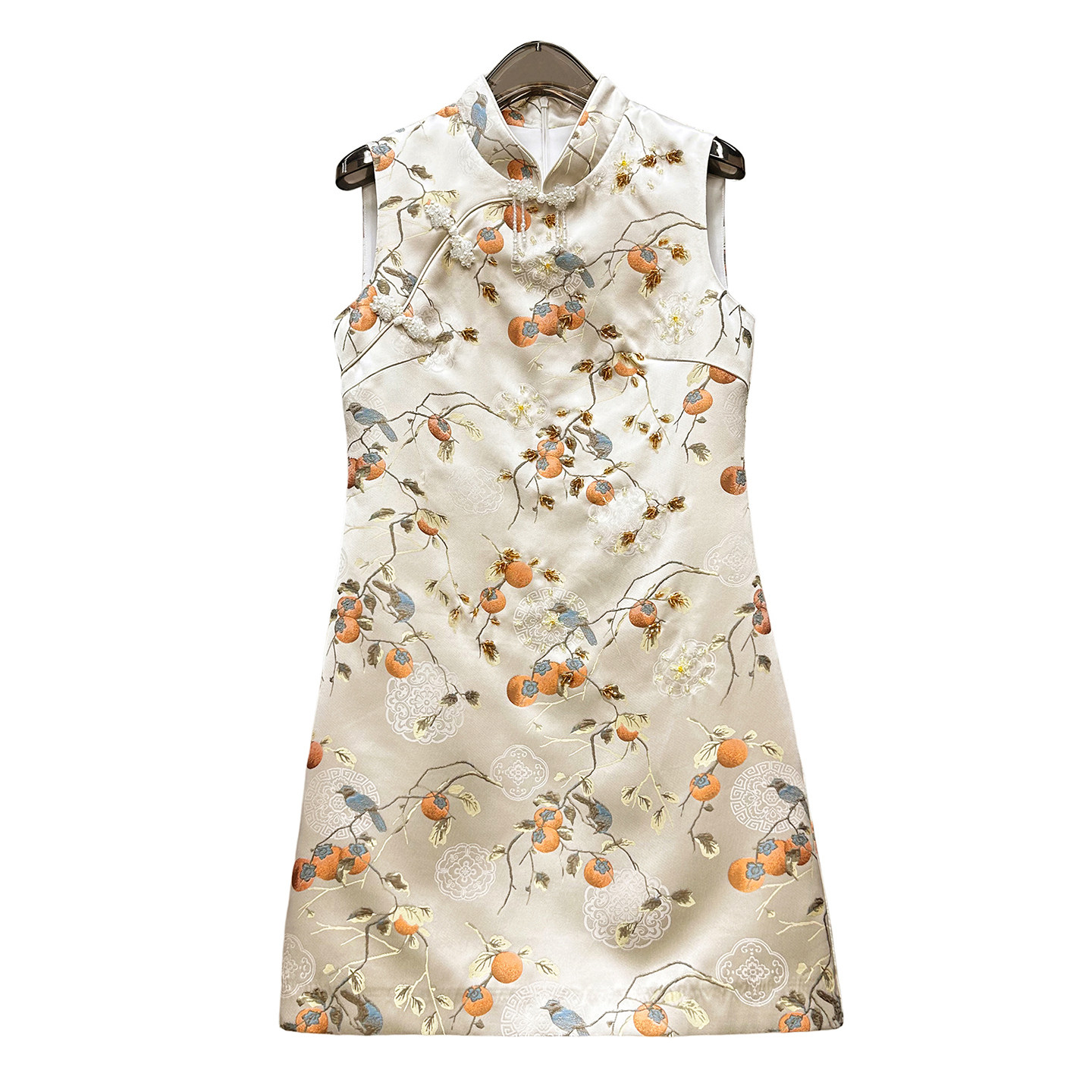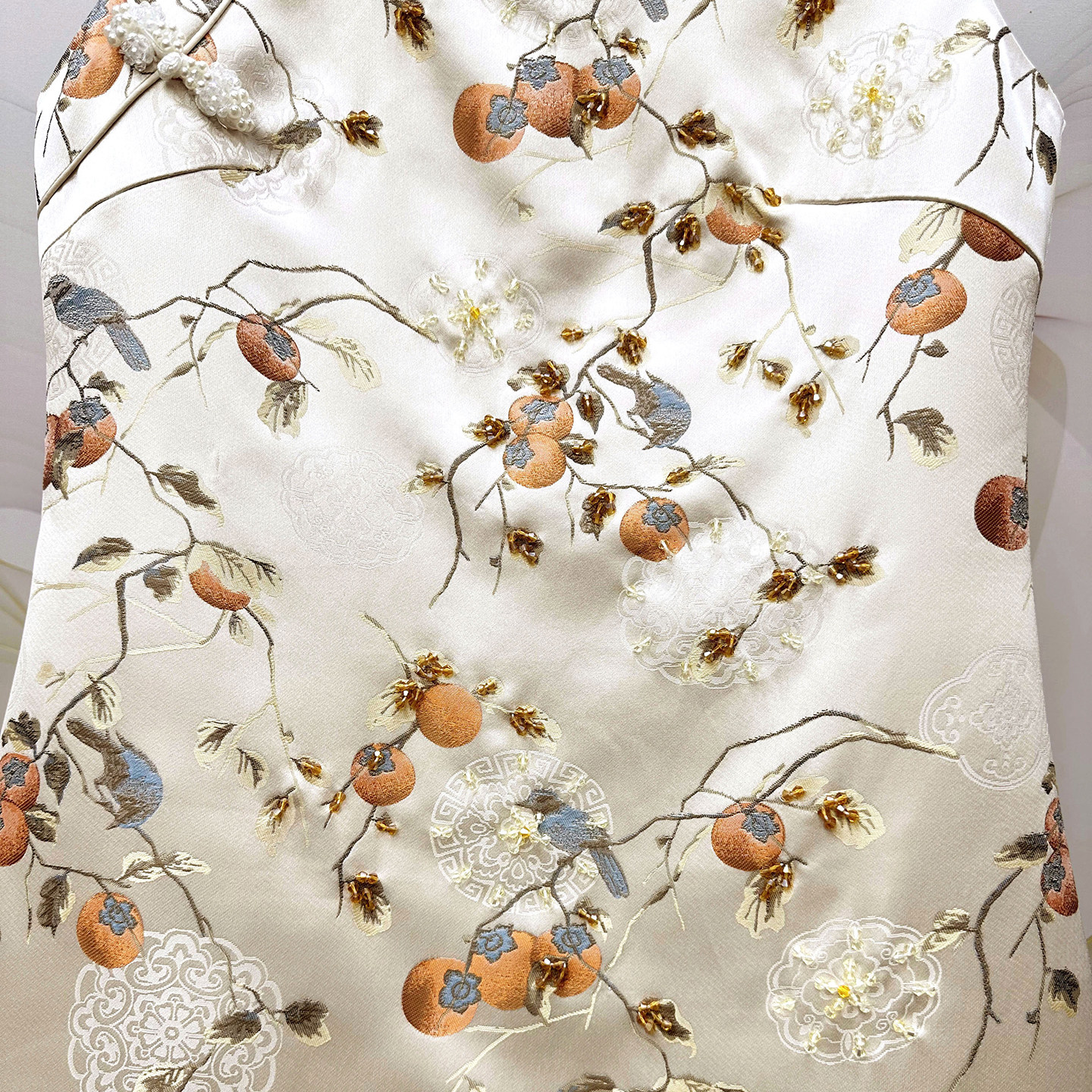 万柿如意~新中式旗袍裙新款女装提花钉珠刺绣国风名媛优雅连衣裙