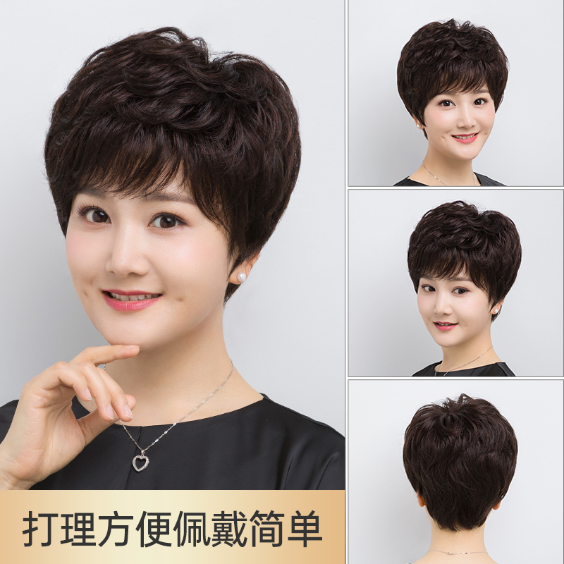 假发女短发真发中老年妈妈短卷发女士头发全头套自然真人发丝发套
