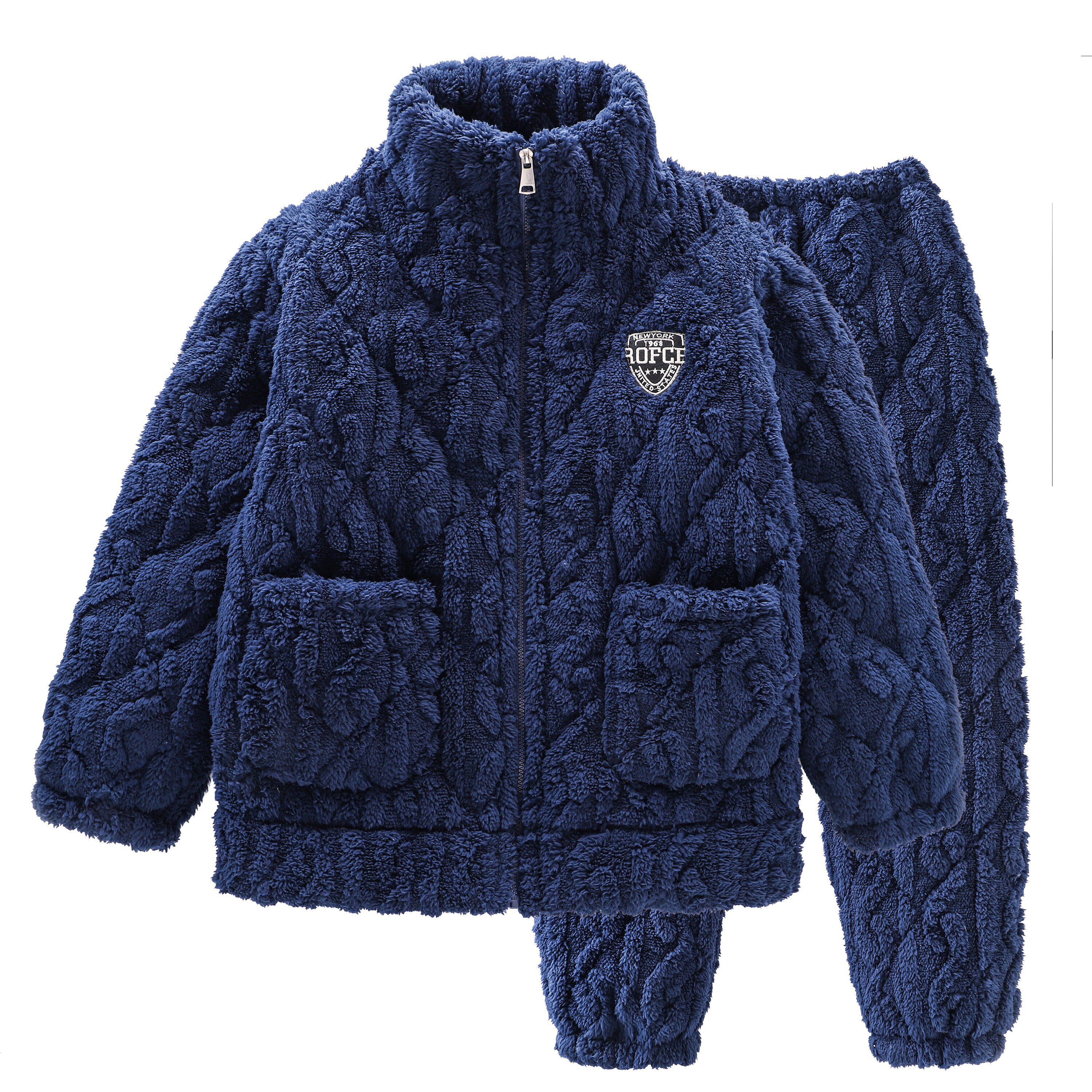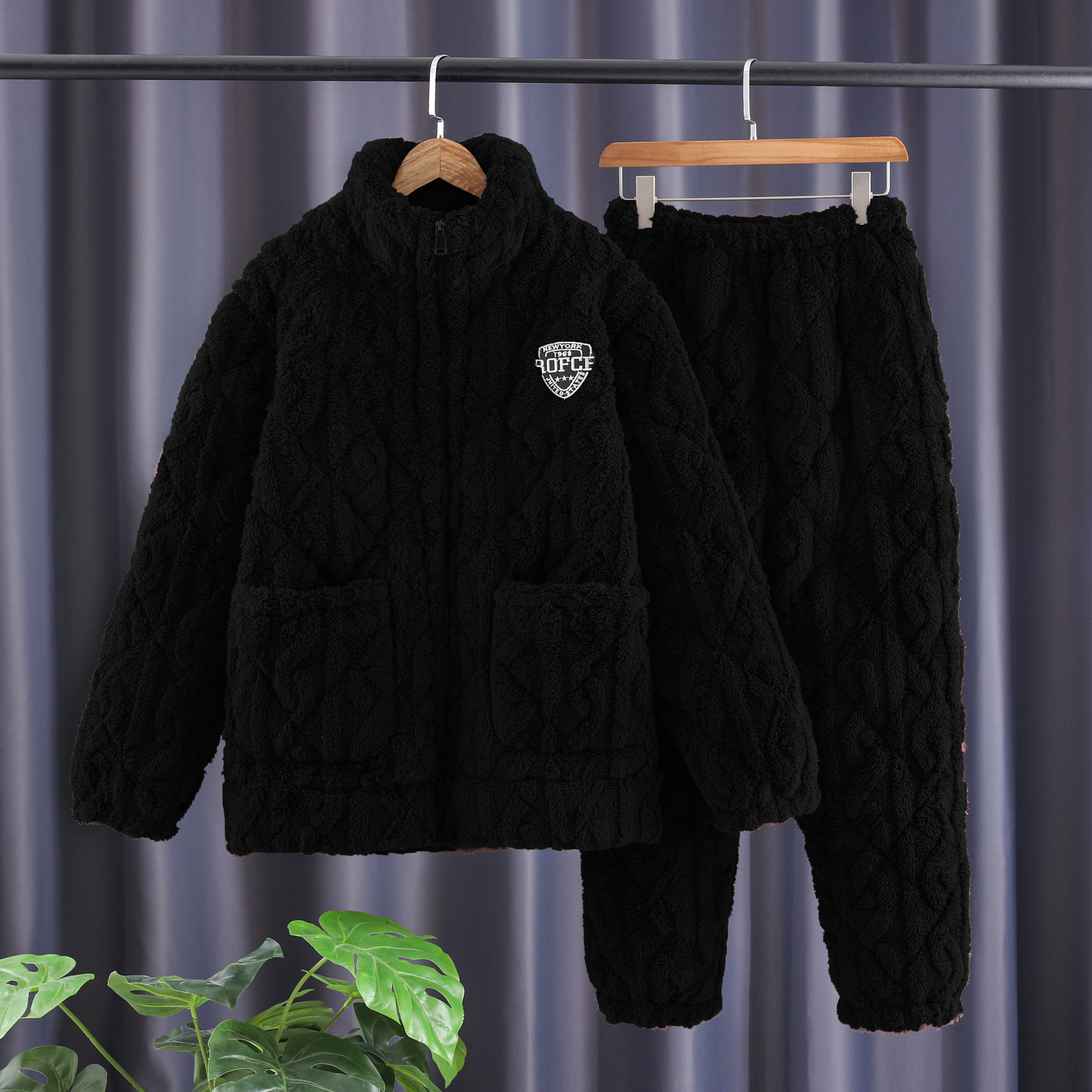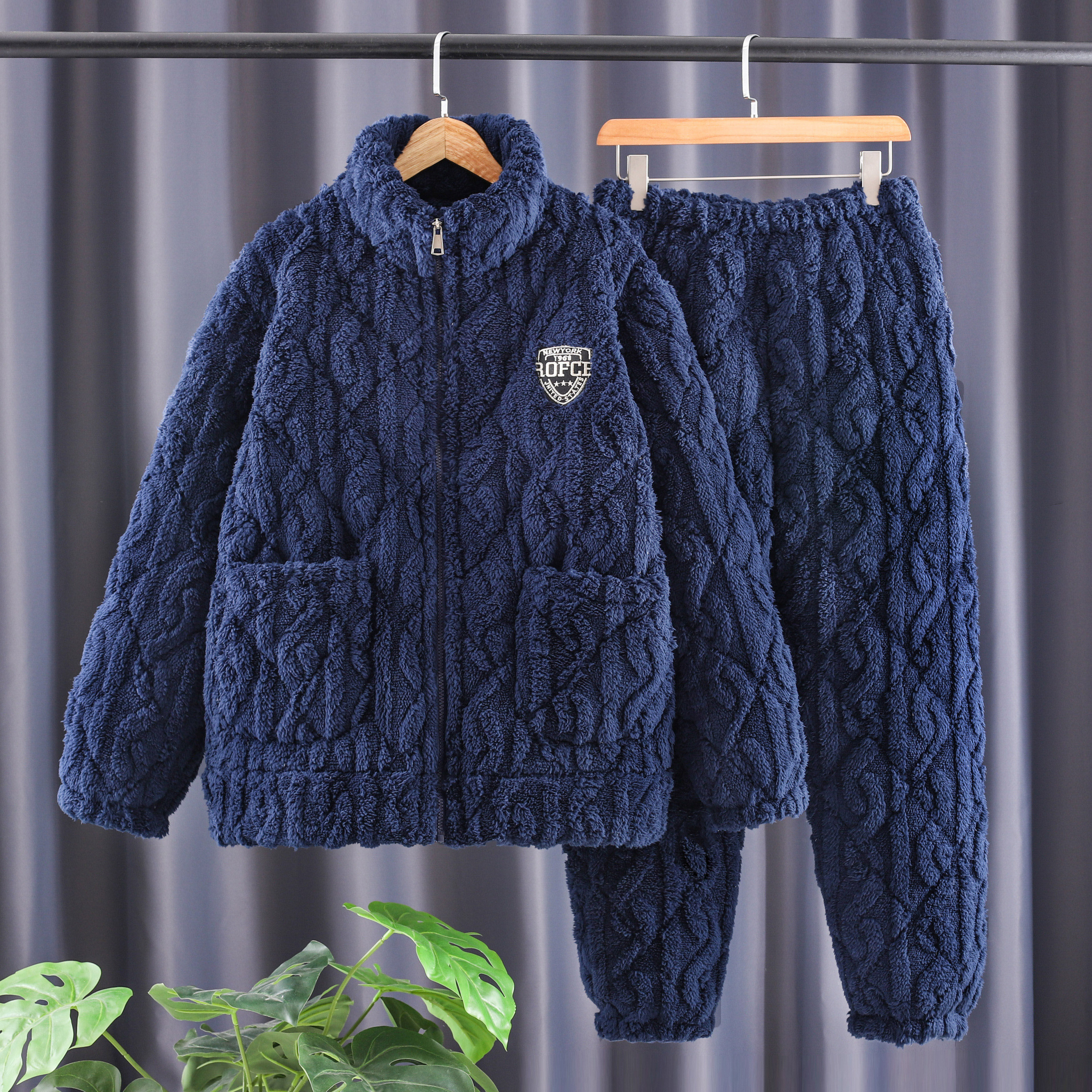 睡衣冬季加绒加厚男士三层夹棉高档拉链男款冬天可外出保暖家居服