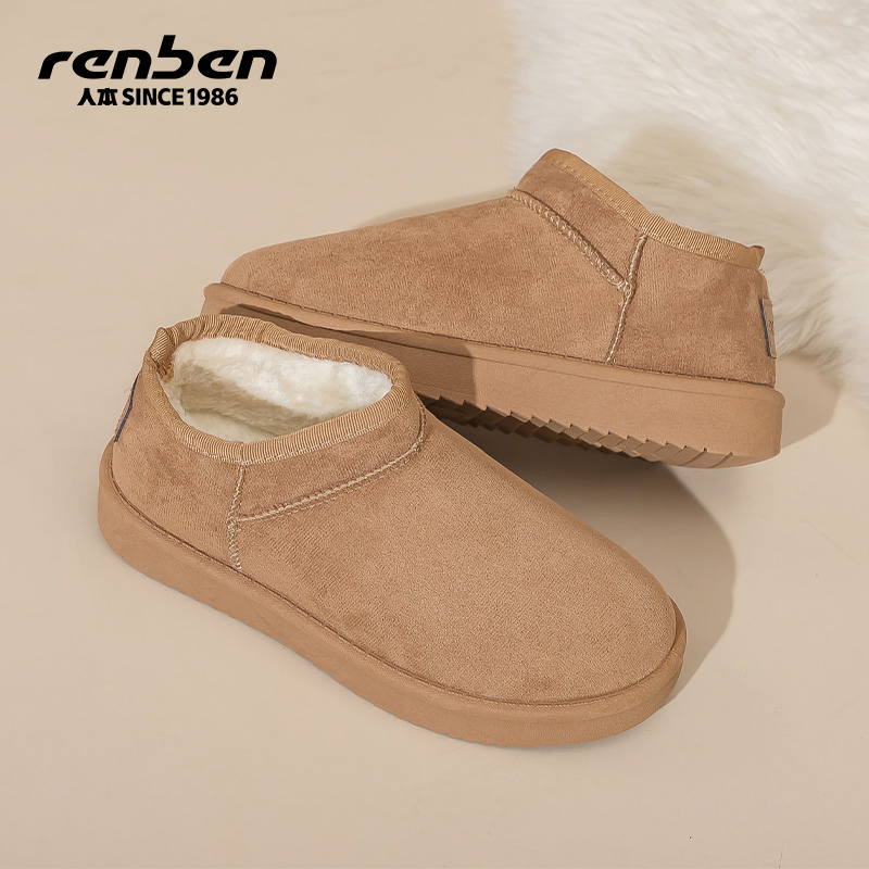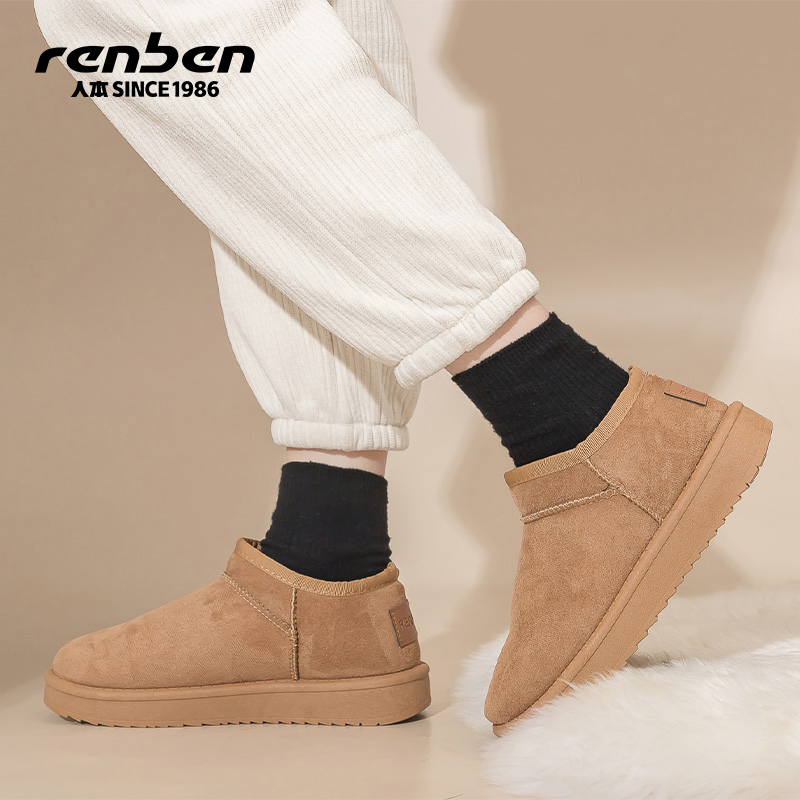 人本厚底雪地靴女2025冬季新款加绒加厚防水防滑中筒保暖户外棉鞋