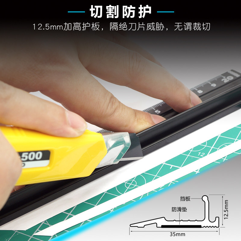nakioo多功能铝合金钢直尺20/30/45cm学生美工切割防护防滑导向尺
