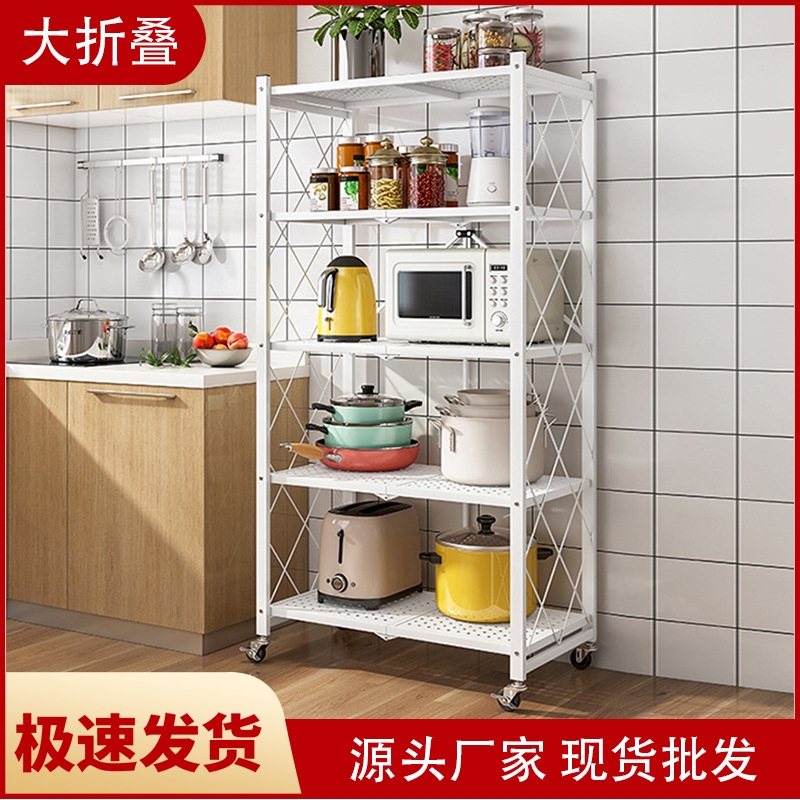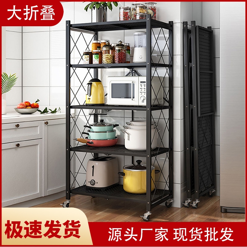 厨房置物架免安装大折叠落地货架多层微波炉烤箱收纳阳台家用架子