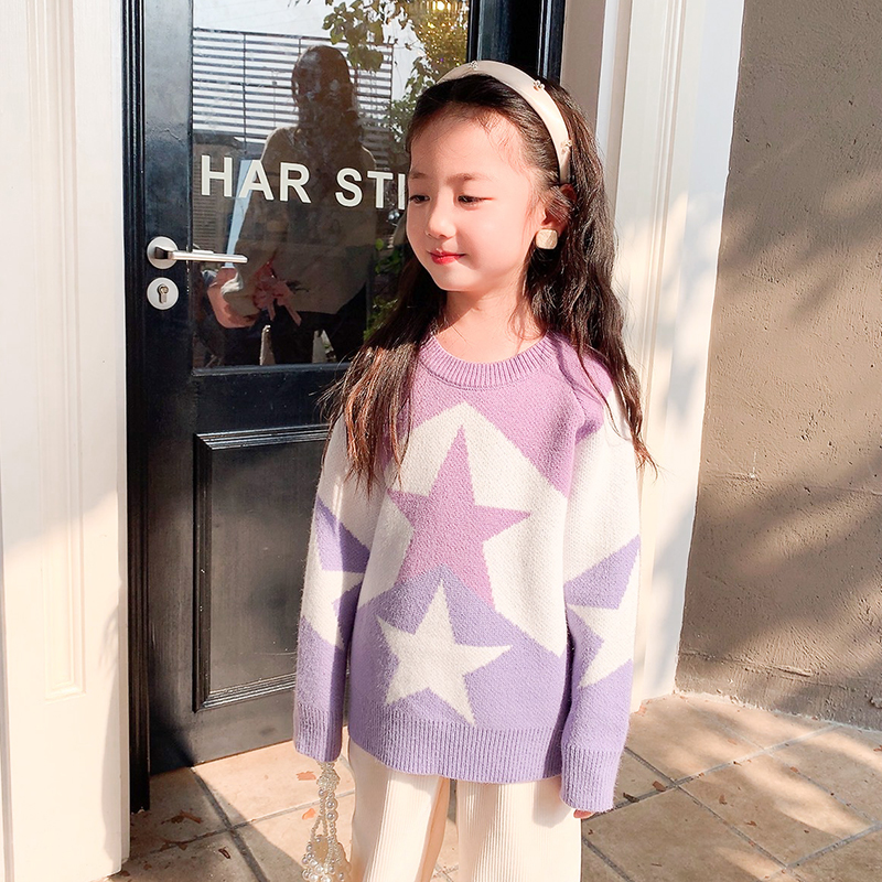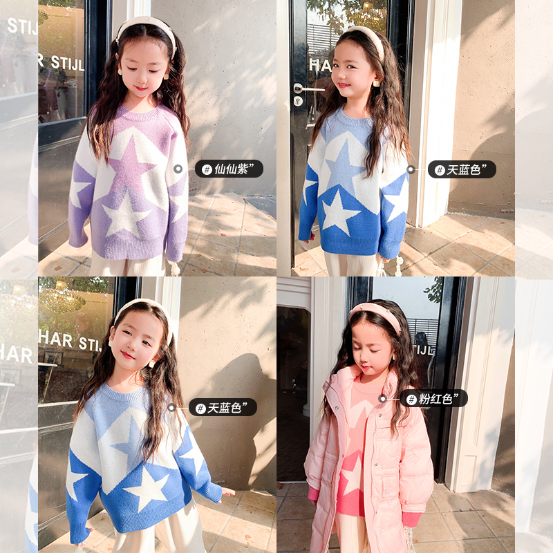 Amybaby女童毛衣2025新款保暖线衣加厚圆领套头儿童针织衫上衣
