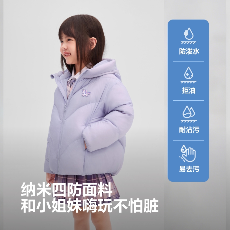 波司登2025新款女童时尚潮流可爱童趣保暖连帽羽绒服T250246302K