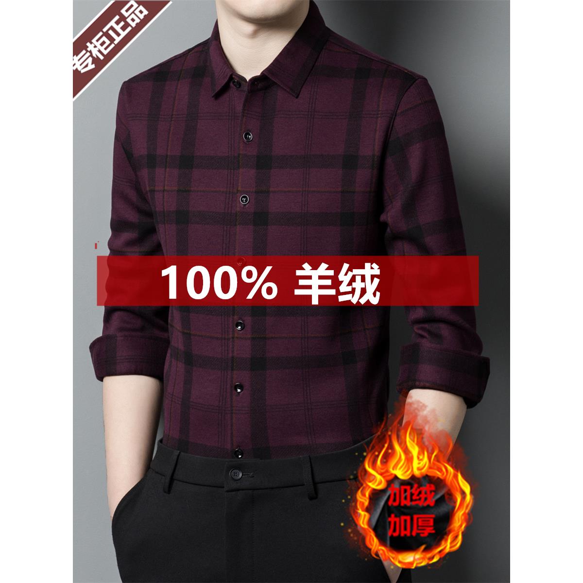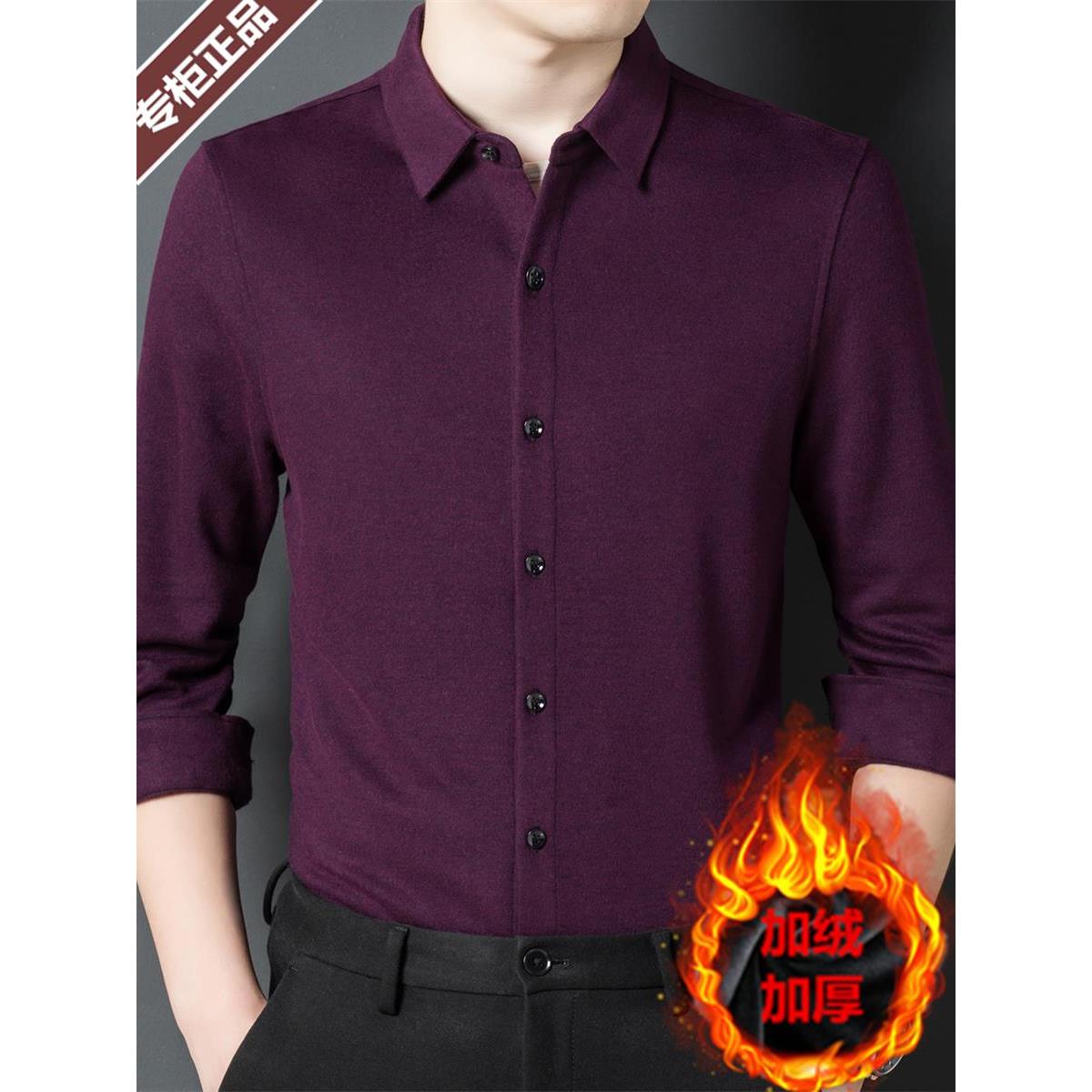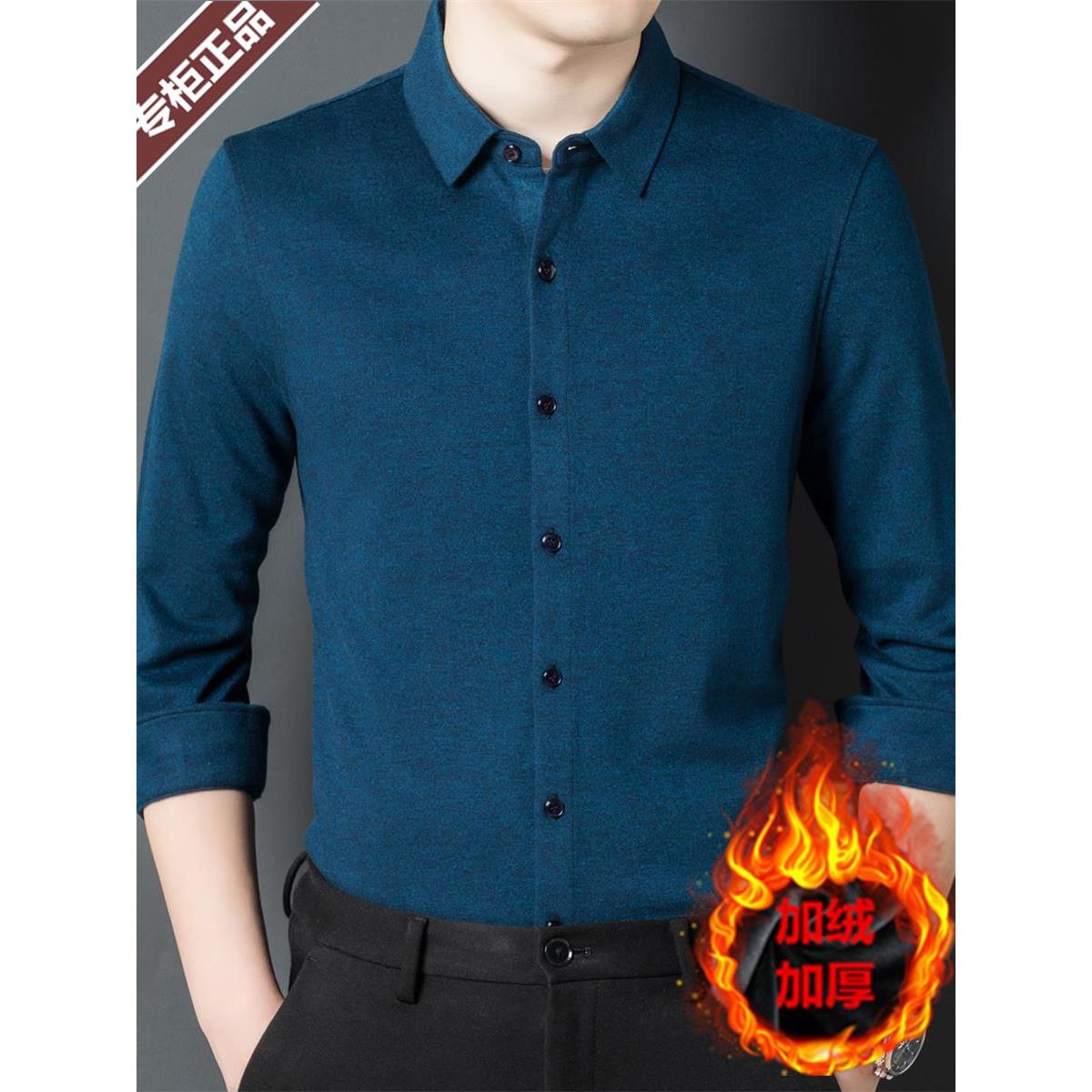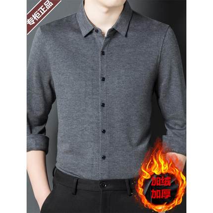 鄂尔多斯市羊绒衬衫男款加绒加厚保暖冬季羊毛纯色衬衣一体绒寸衫