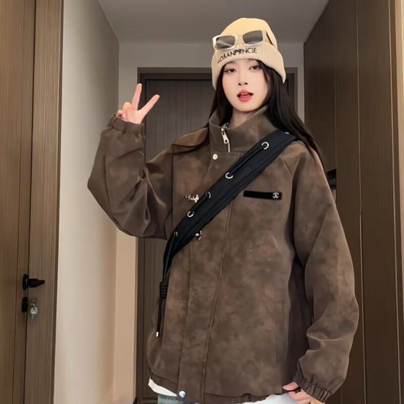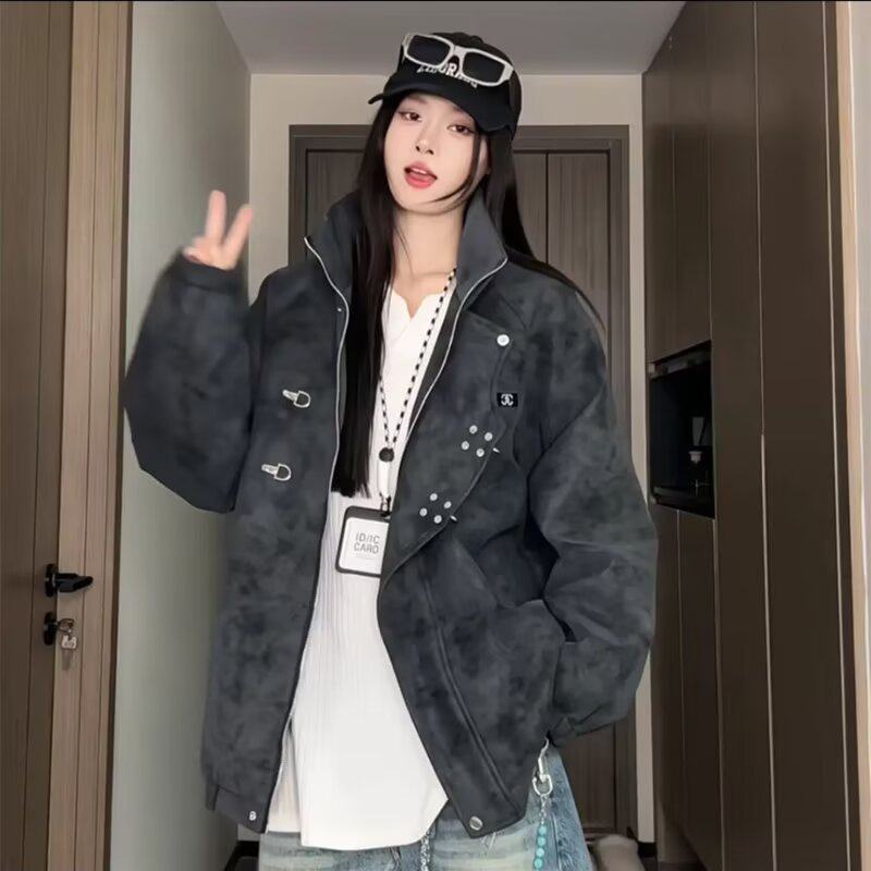 美式复古扎染皮衣夹克男高级感痞帅新中式外套短款立领春秋棒球服