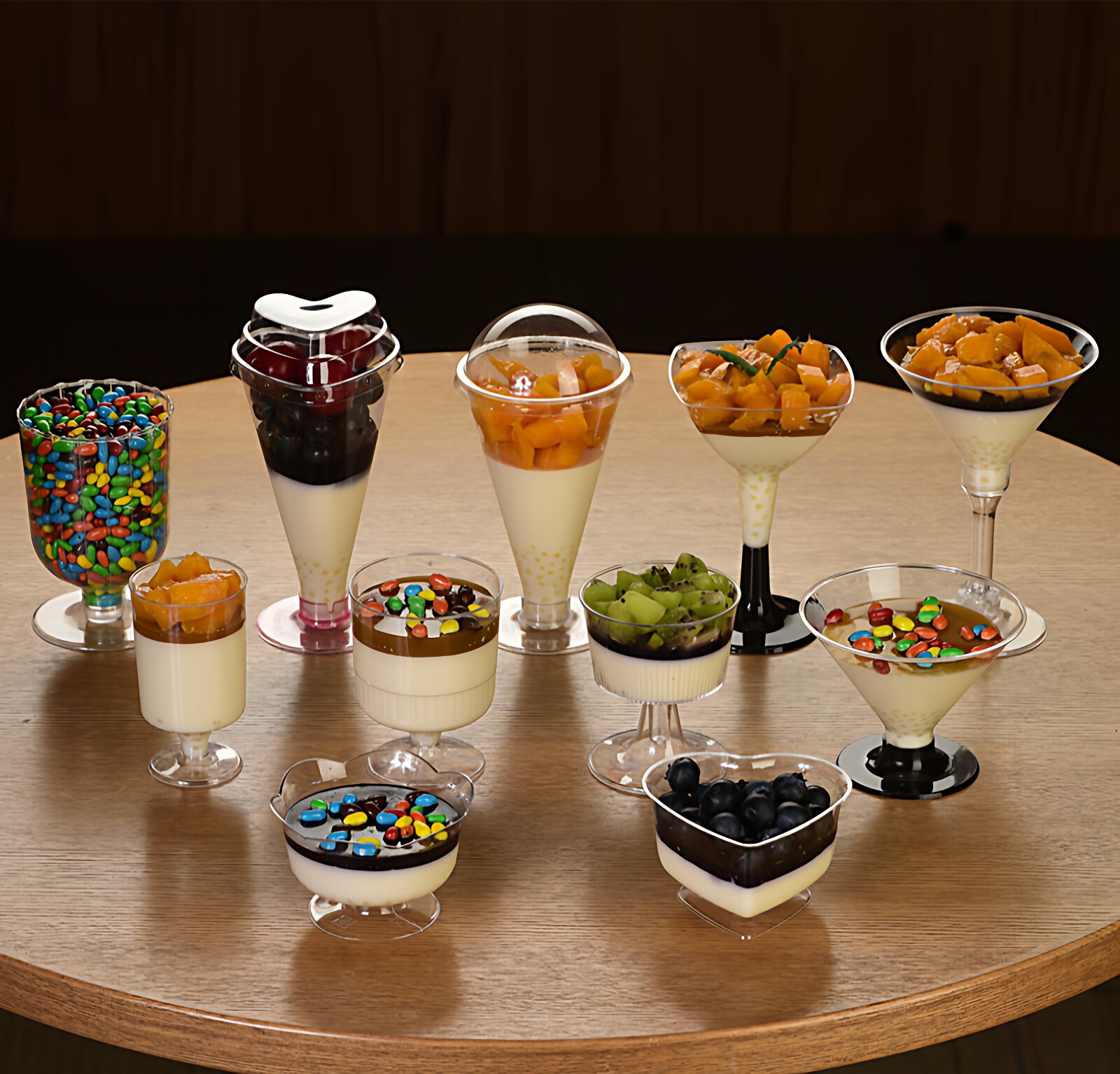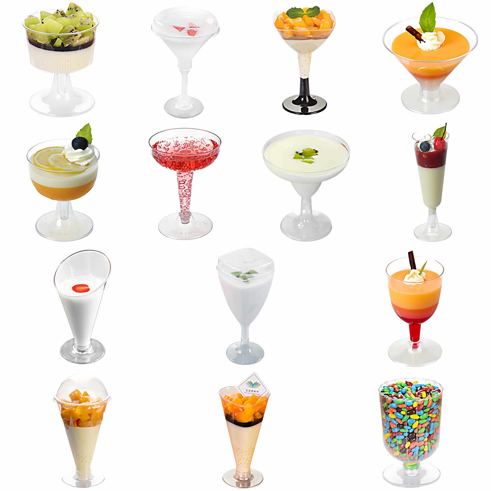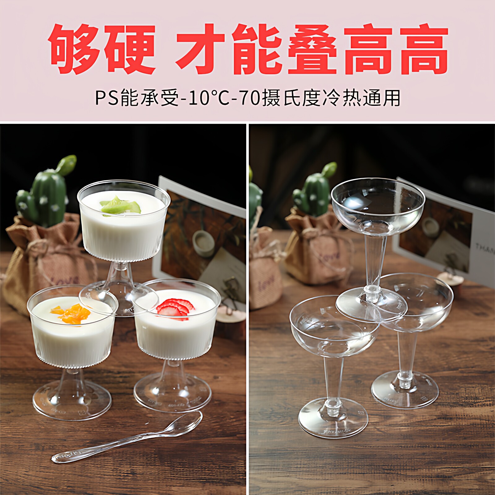 高脚慕斯杯木糠杯布丁杯红酒香槟杯航空杯塑料一次性带盖透明杯子