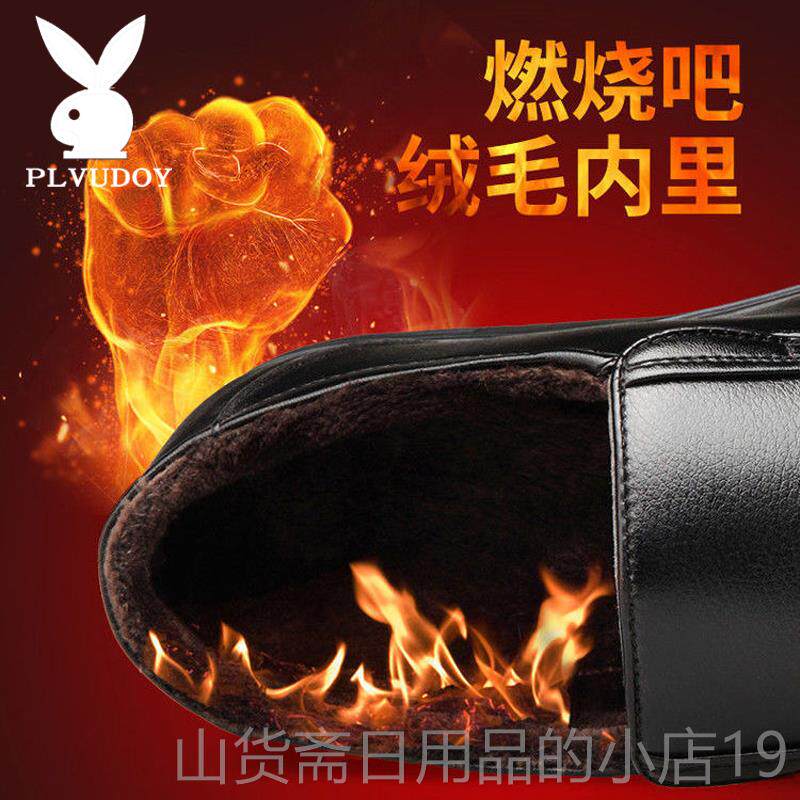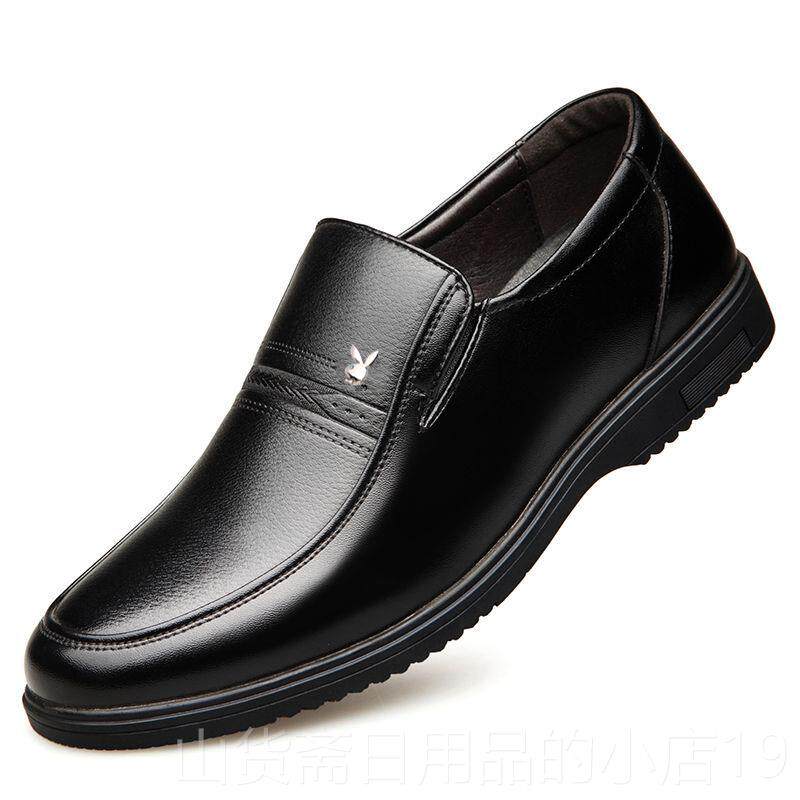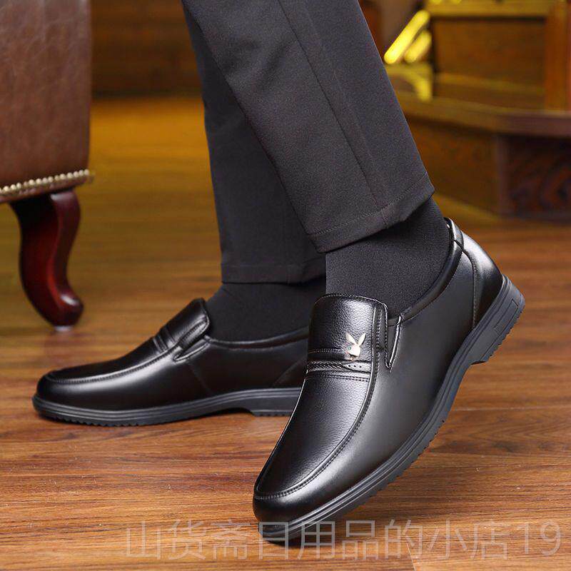 高档冬季皮鞋男士皮真装商休闲鞋加绒正中老年务爸爸鞋子