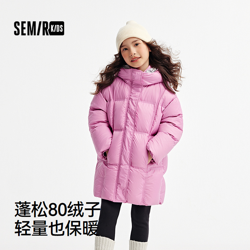 森马儿童羽绒服2024新款中长款连帽三防外套百搭女童加厚保暖冬装