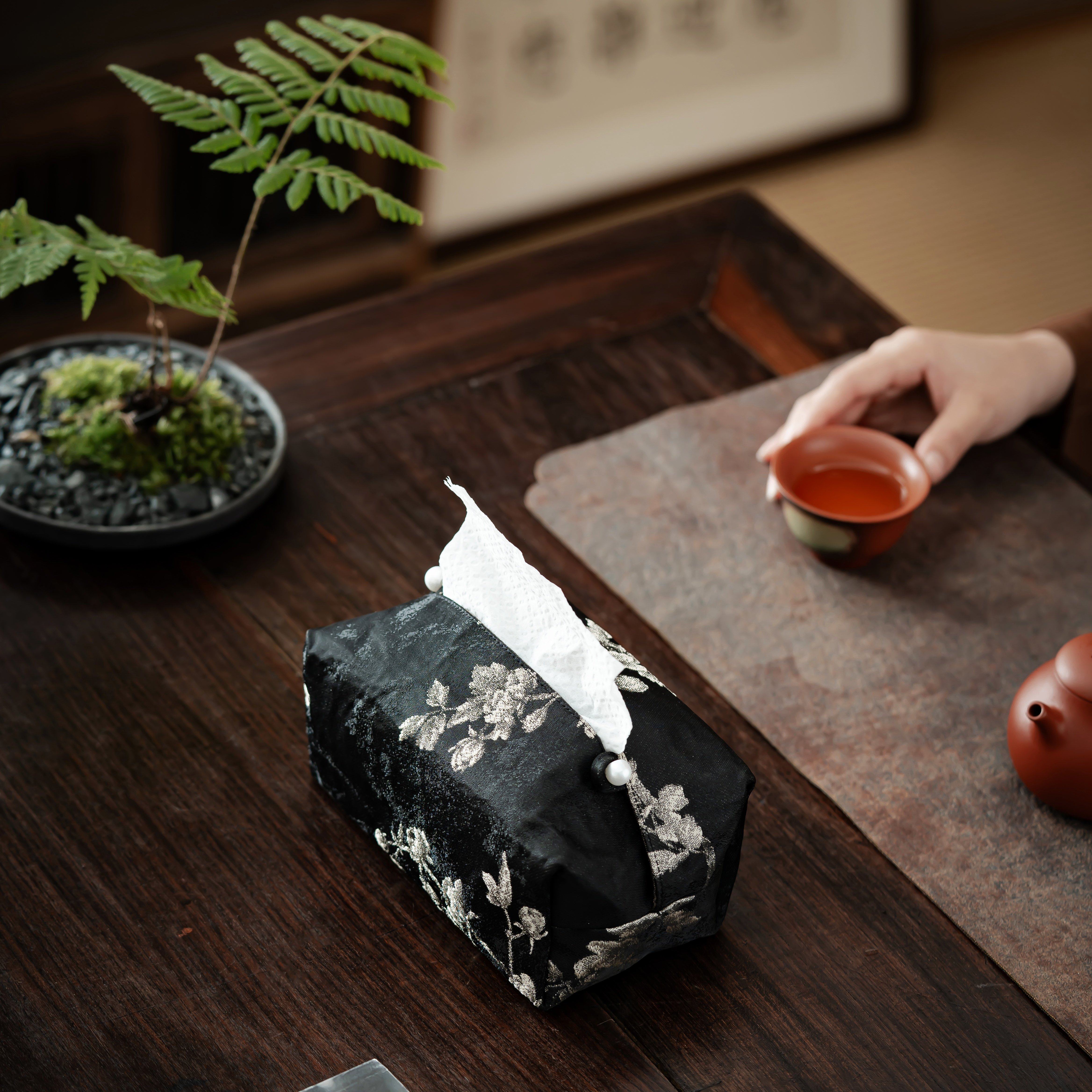 中式织锦提花布袋纸巾盒茶室茶道布艺抽纸盒创意收纳袋纸巾套