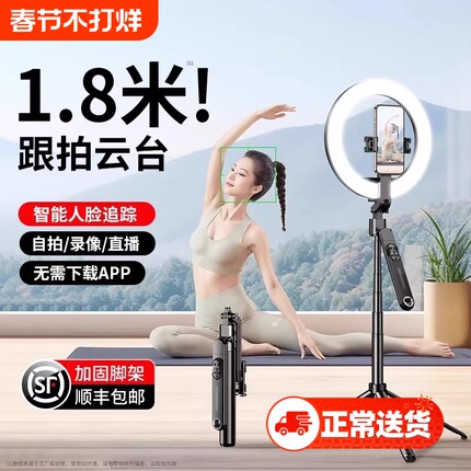 AI跟拍自拍杆直播支架云台2025新款360度旋转自拍神器手机通用自动拍摄稳定器旅游便携落地三脚架4防抖抖音