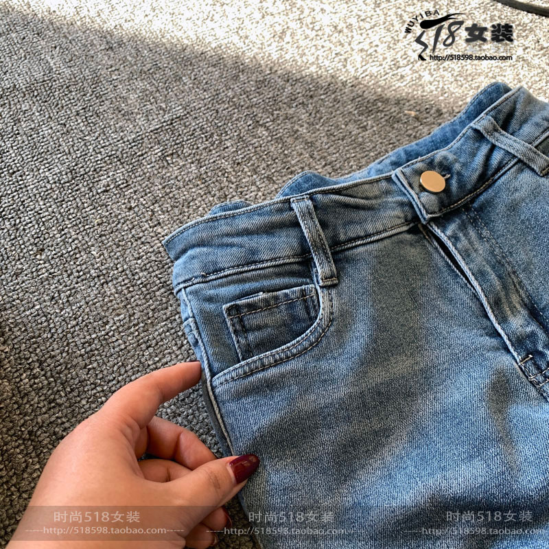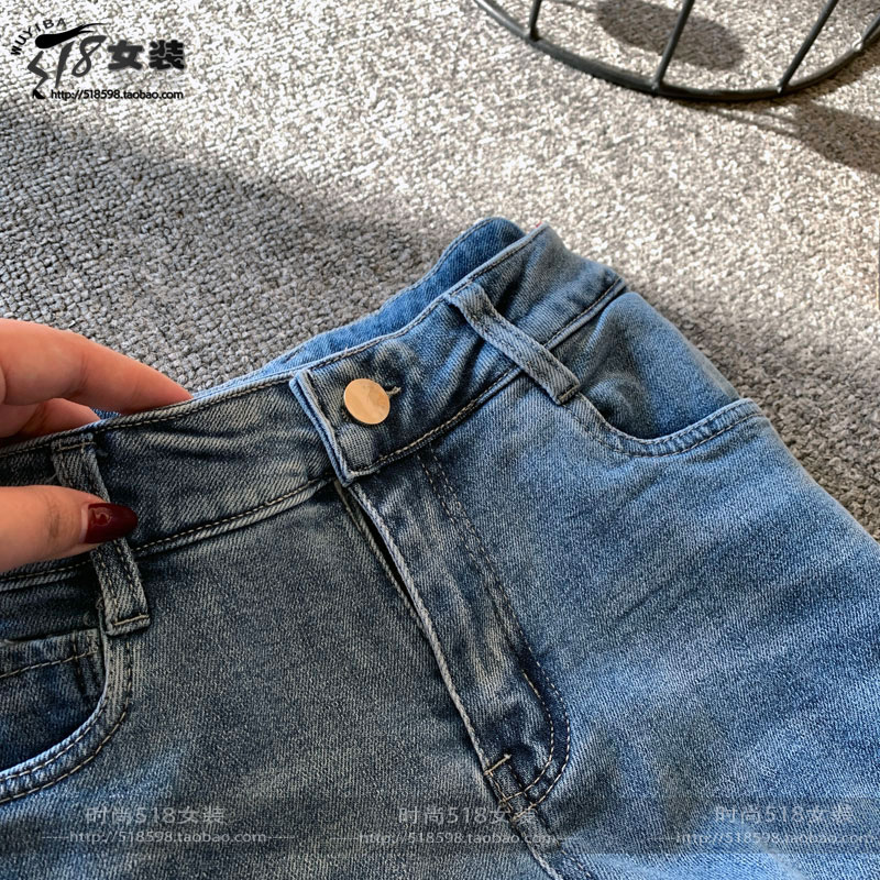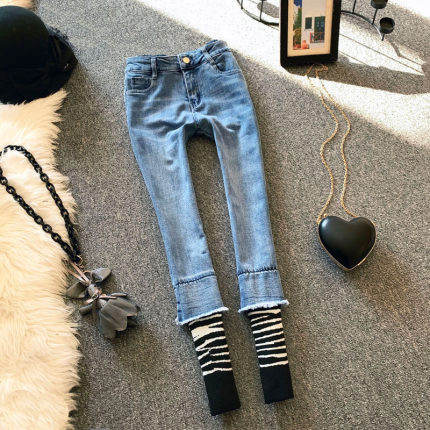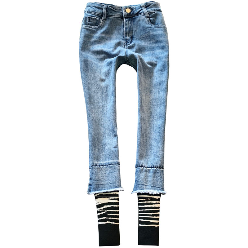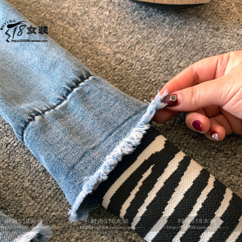 欧洲站春季新款拼接女修身牛仔裤