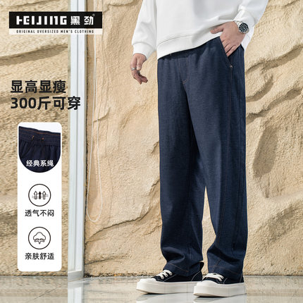 黑劲大码男装春季美式水洗软原色加裆牛仔裤300斤宽松休闲长裤潮