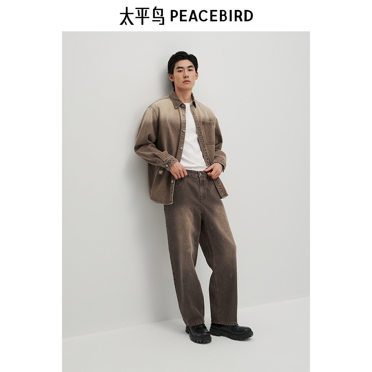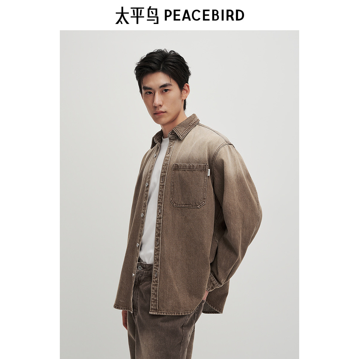 太平鸟男装 休闲衬衫秋季复古水洗渐变色牛仔衬衫上衣男