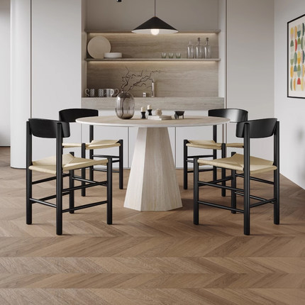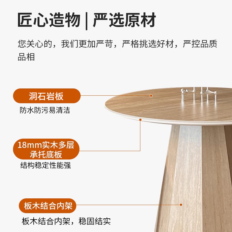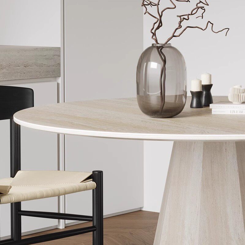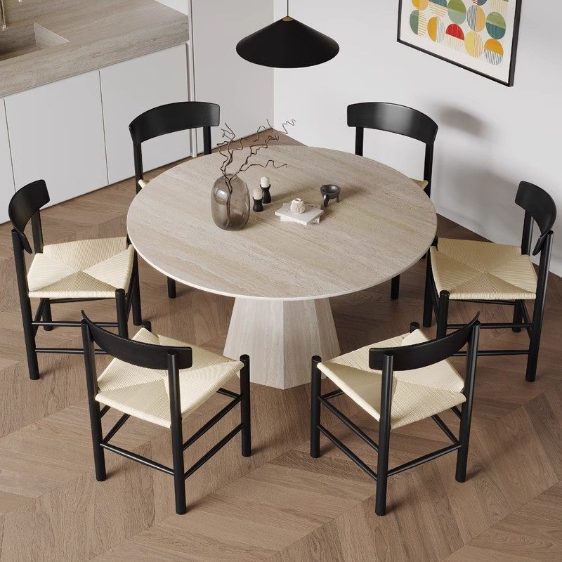 吉诺威2025年新款小户型餐桌椅简约现代诧寂风洞石圆形岩板餐桌