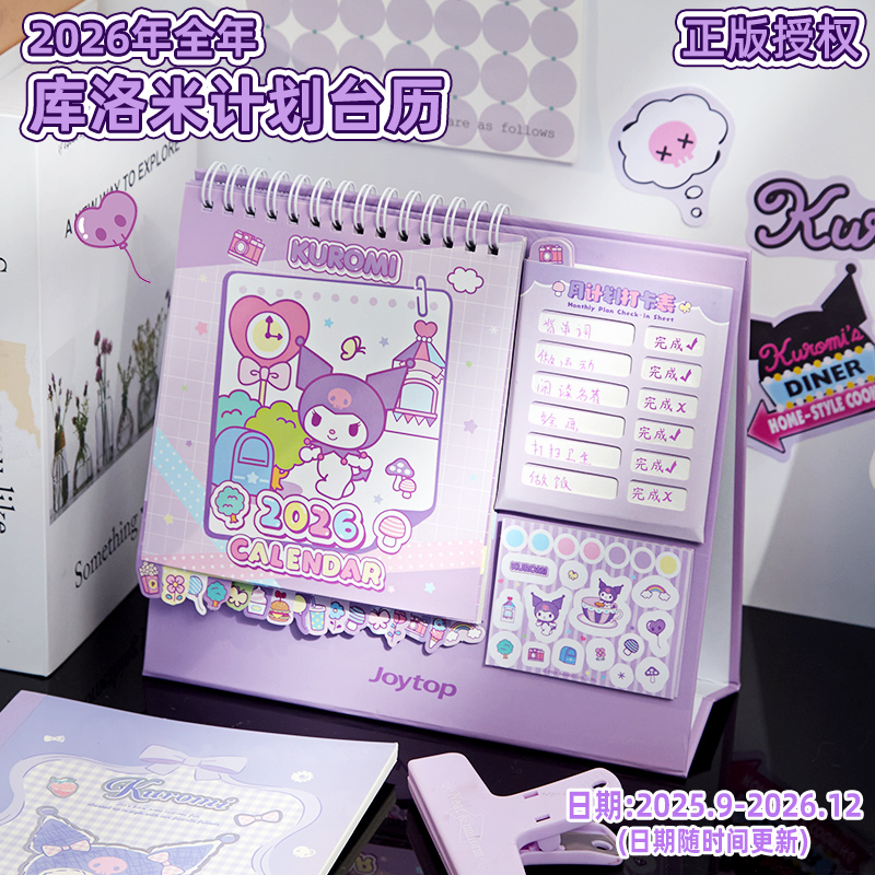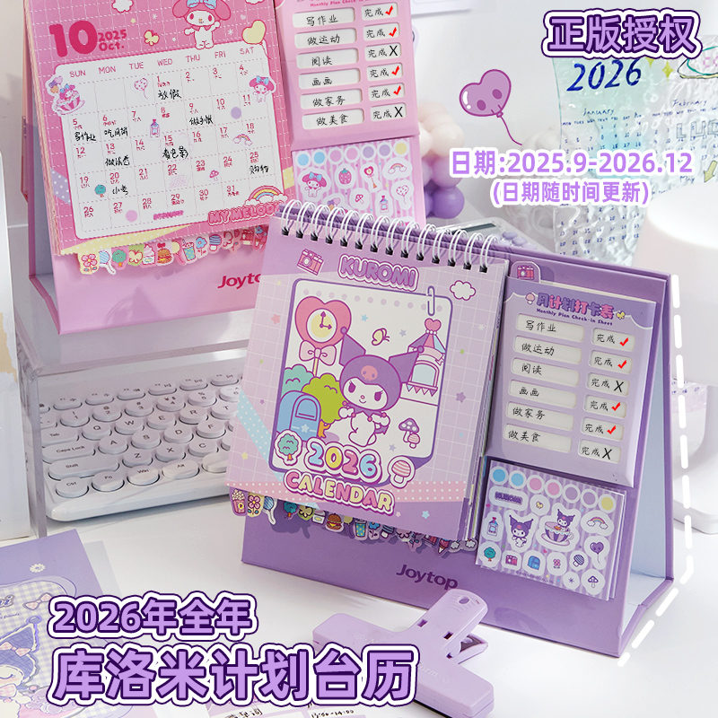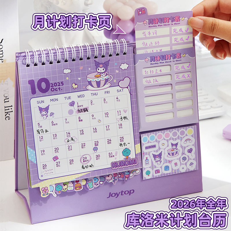 【三丽鸥正版授权】库洛米台历2026年新款月计划打卡小日历2025创意桌面摆件办公室儿童26年台式可爱卡通月历