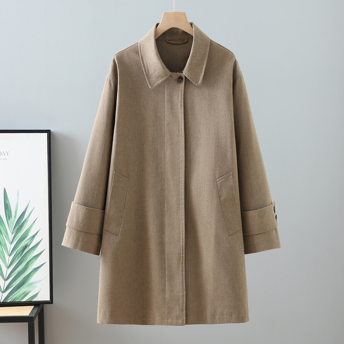 日单正品纯棉隐形扣中长款气质大衣女秋冬新款文艺高级感风衣外套