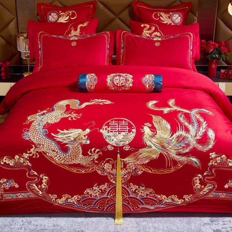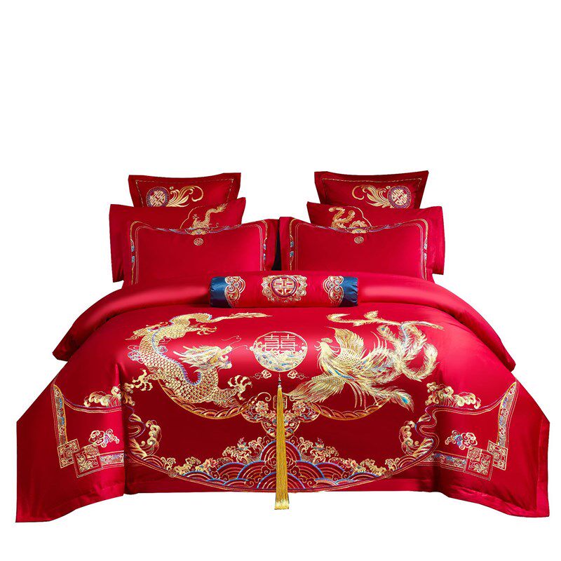九喜狐婚庆四件套结婚大红床单床上用品喜被婚嫁婚床新婚婚房红色