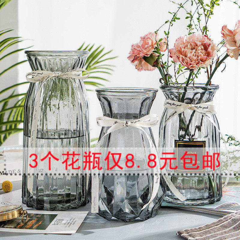 【三件套】创意玻璃花瓶网红水养鲜花富贵竹餐桌客厅插花装饰摆件