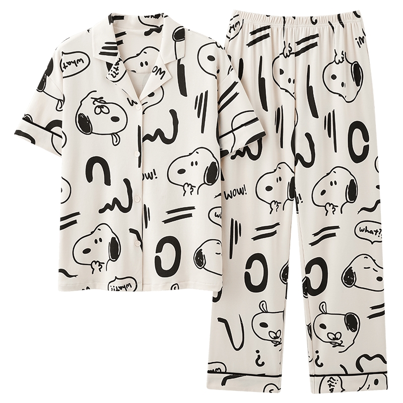 情侣睡衣夏款纯棉短袖长裤2025新款女士甜美卡通男舒适家居服套装