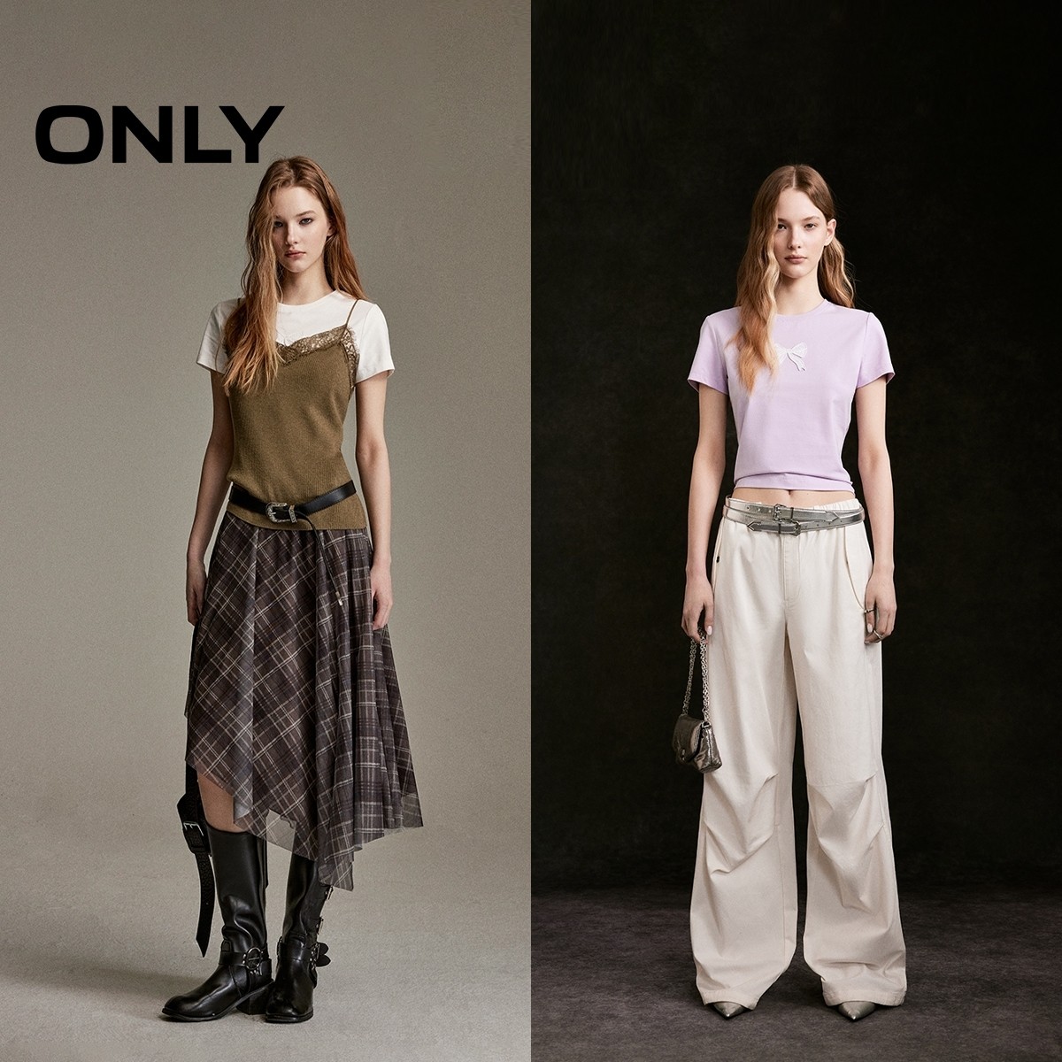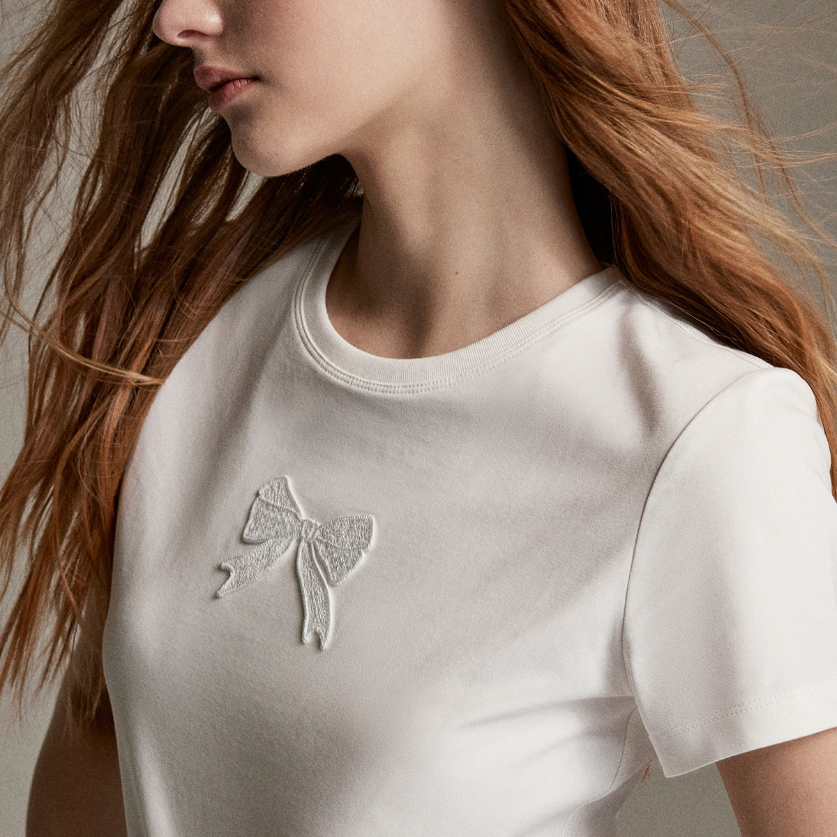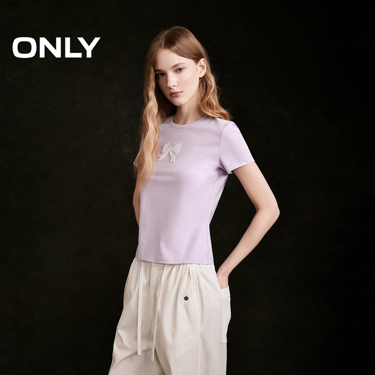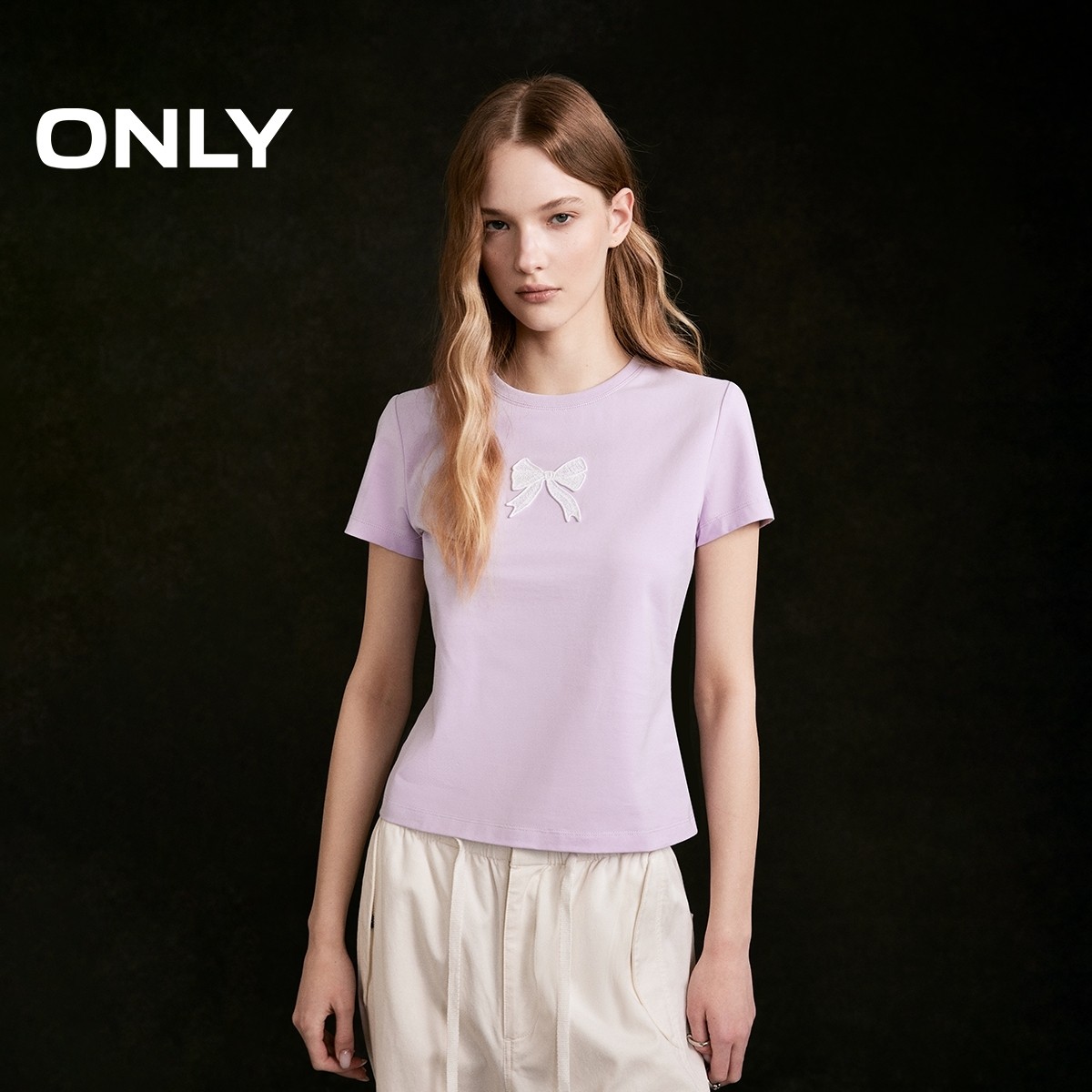 ONLY2026春季新款甜美可爱立体蝴蝶结收腰修身短款正肩短袖T恤女