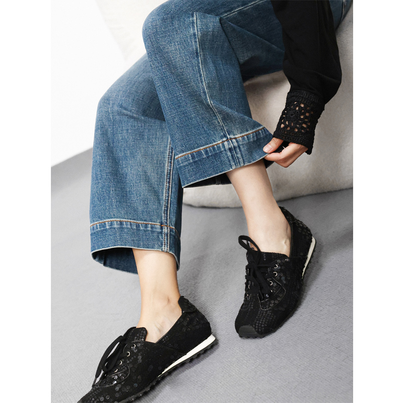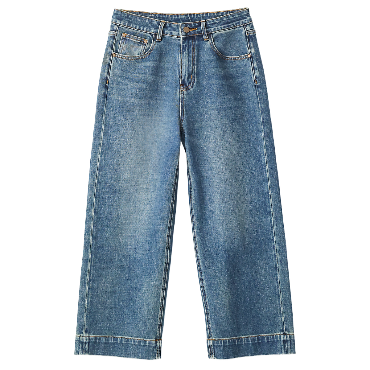 款棉质水洗复古直筒九分牛仔裤女