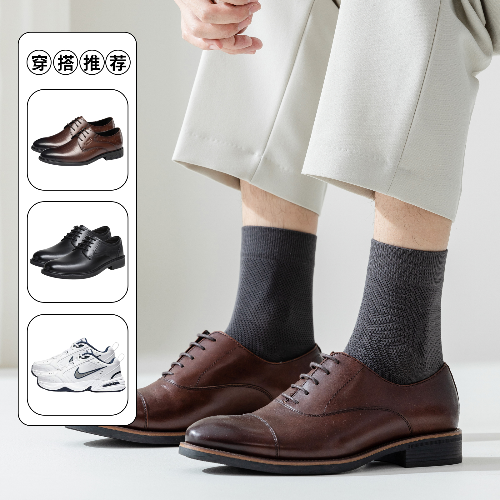 灰色中筒袜子男士春秋季薄款高端秋天长筒抑菌纯棉防臭袜吸汗纯色