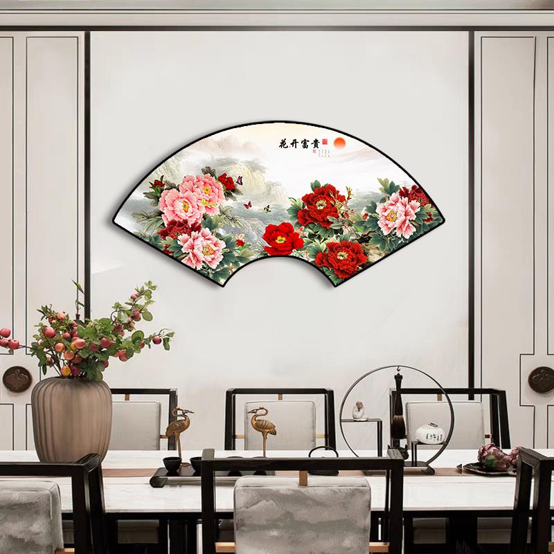 扇形装饰画 画牡丹花挂画 画门顶扇面客厅卧室床头壁画 画新中式