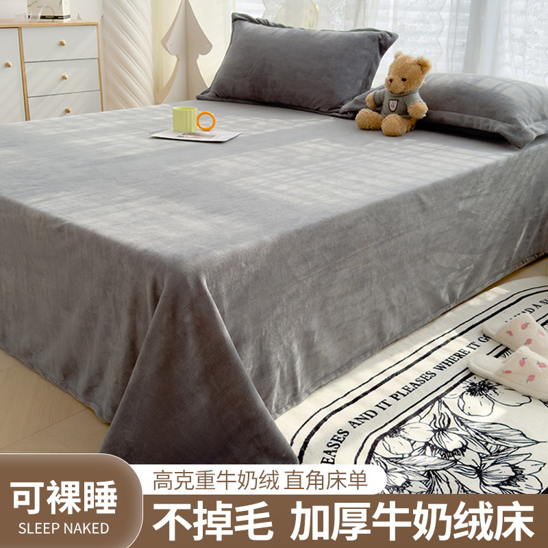 牛奶绒床单加厚保暖毛绒学生宿舍单人法兰绒冬季被单子纯色毛毯