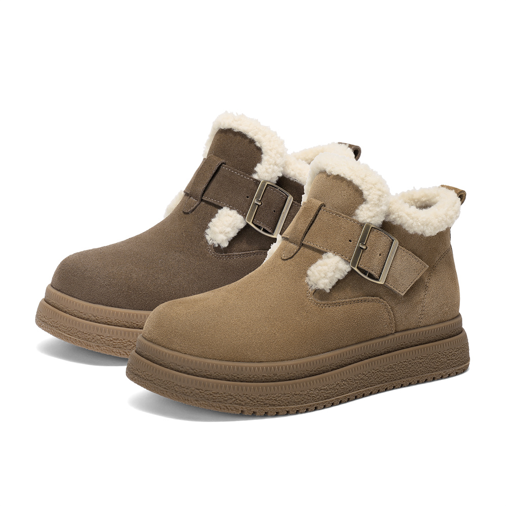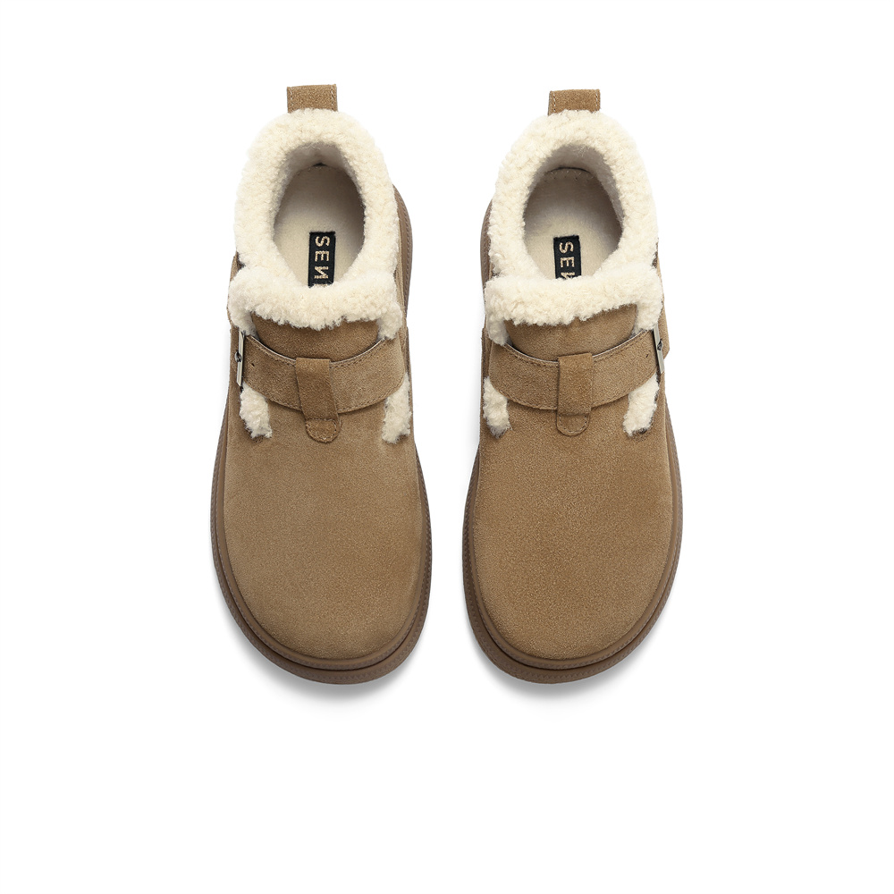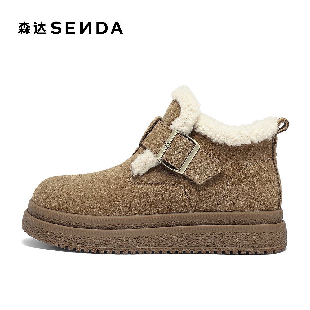 森达雪地靴女2025冬新商场同款牛皮毛绒厚底勃肯毛毛短靴XTK01DD5