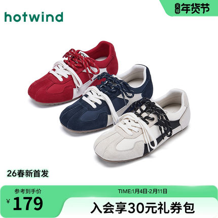 热风平底德训鞋女鞋2026年春季新款运动户外休闲鞋薄底红色鞋子