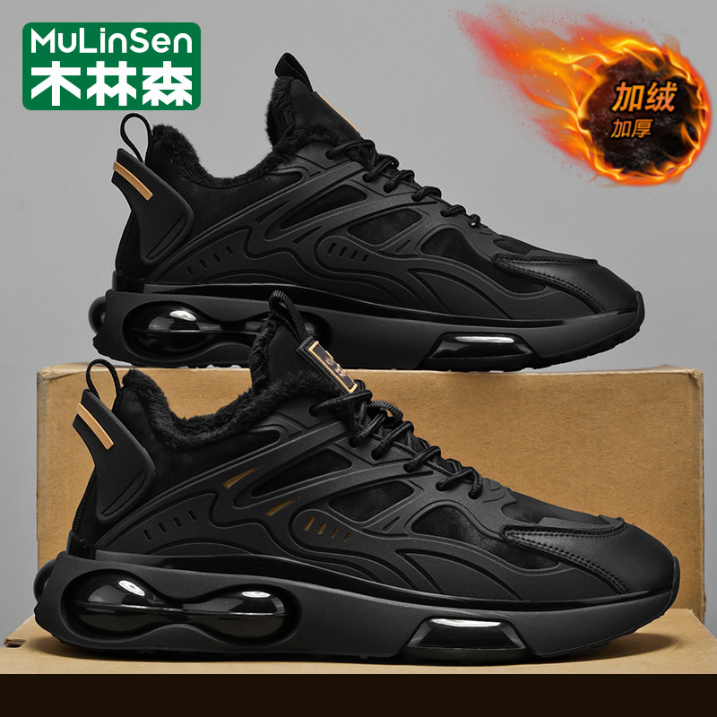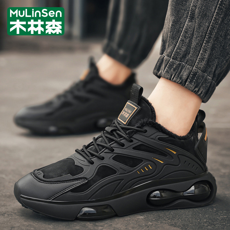 木林森棉鞋男冬季运动休闲加绒加厚保暖皮毛一体软底防滑老爹潮鞋