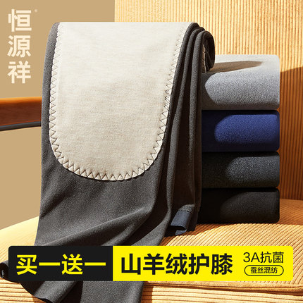 恒源祥保暖裤男士秋裤含山羊绒蚕丝护膝德绒发热打底毛线衬裤冬季
