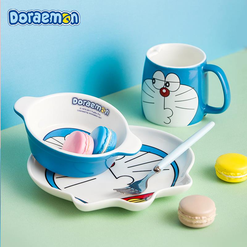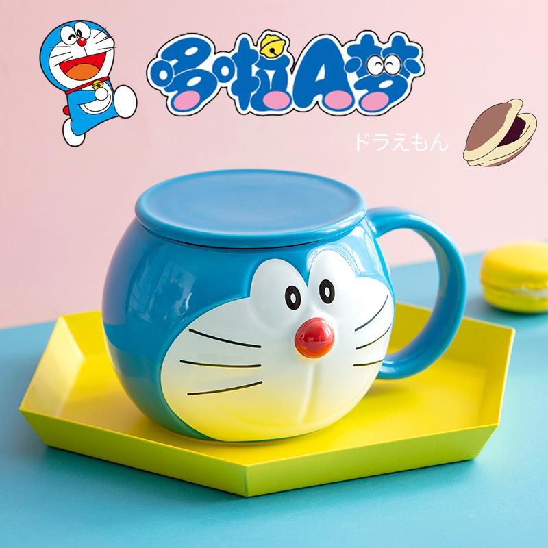 哆啦A梦陶瓷杯大容量带盖带勺马克杯儿童牛奶杯可爱卡通咖啡杯子