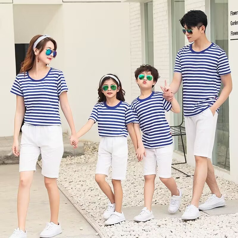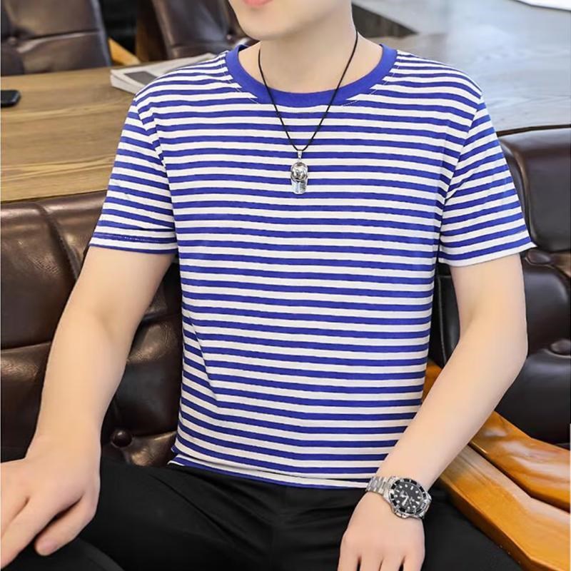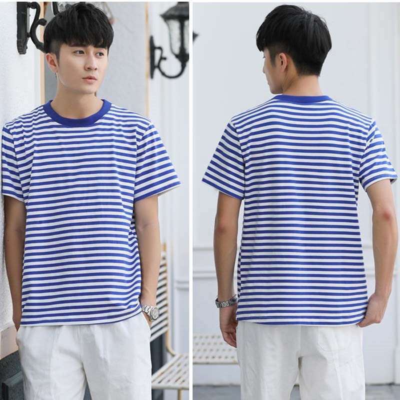 夏季纯棉海魂衫男女情侣短袖百搭t恤 水手服海军风蓝白条纹情侣装