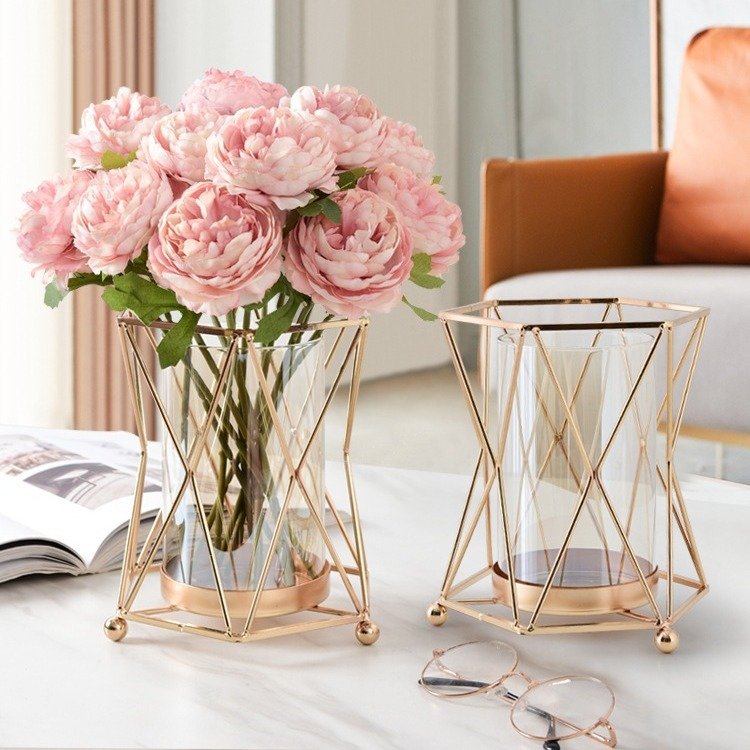 创意水培玻璃花瓶假干花插花轻奢摆件客厅餐桌茶几高档花艺装饰品