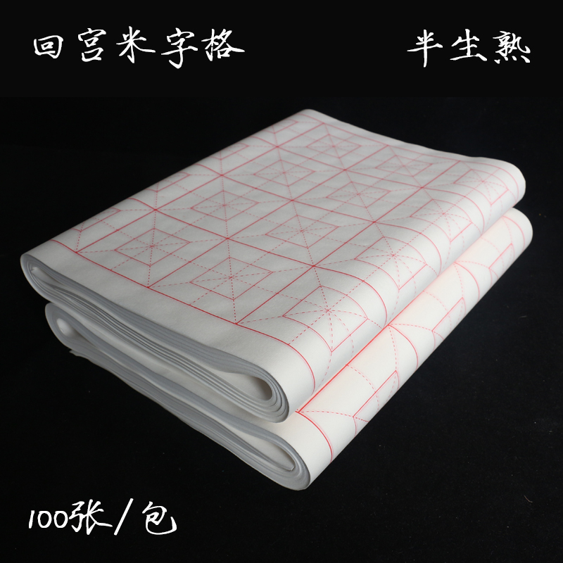 四尺四开回宫格米字格宣纸10cm18格7.5cm32格瘦金体格子纸毛笔字半生半熟中楷书法专用日课初学者学生练习纸