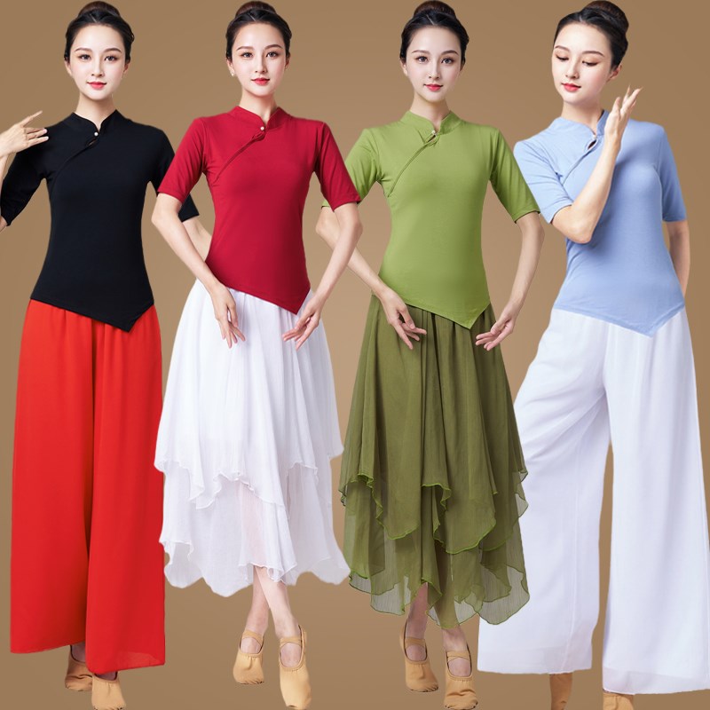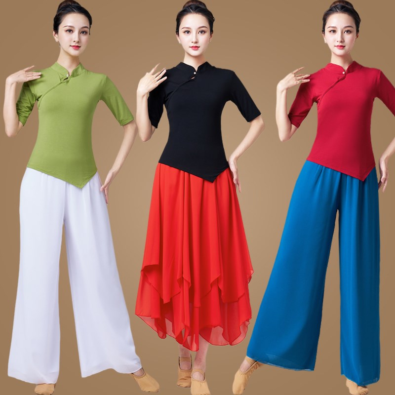 舞蹈练功服身韵飘逸演出服广场舞服装套装女中袖古典现代舞跳舞衣