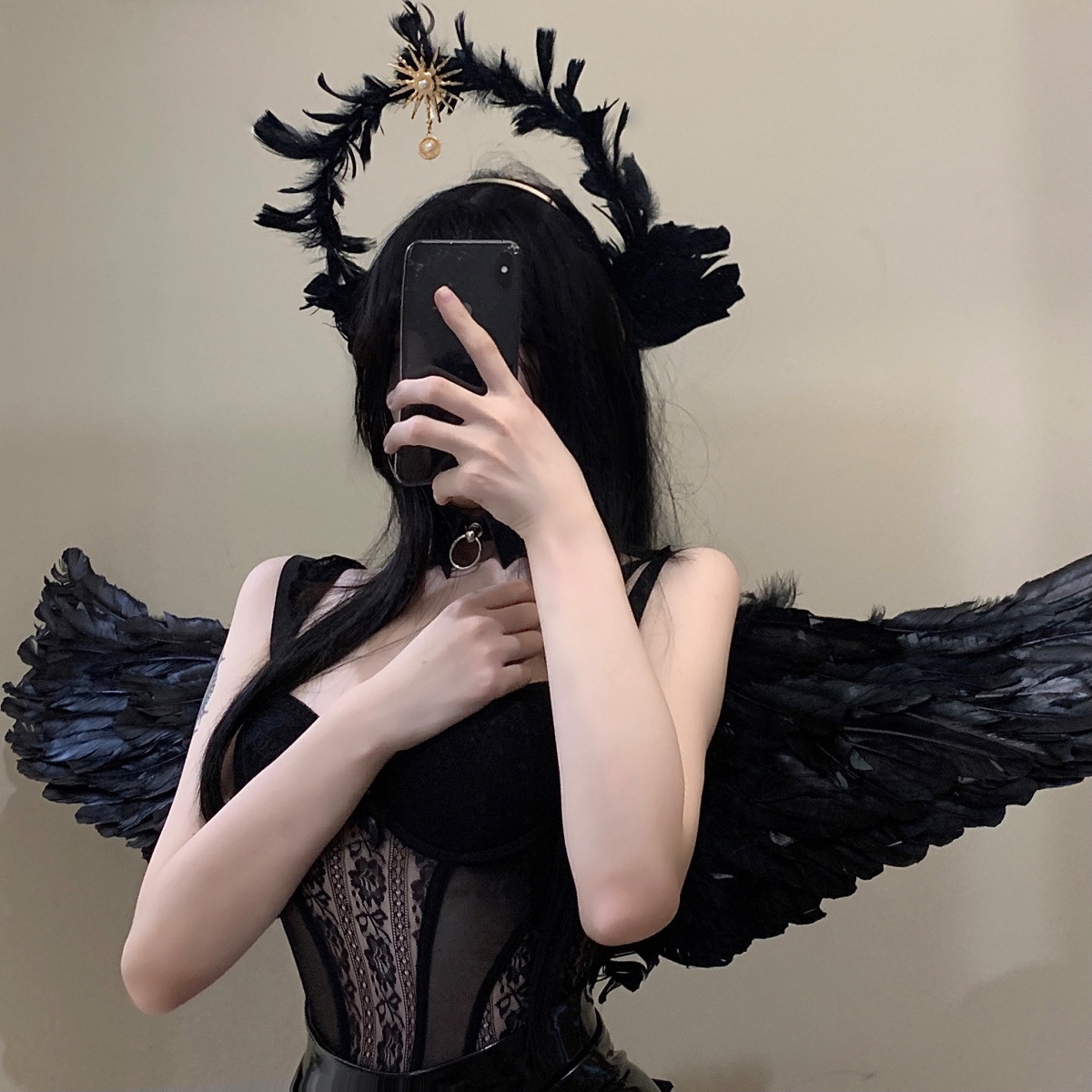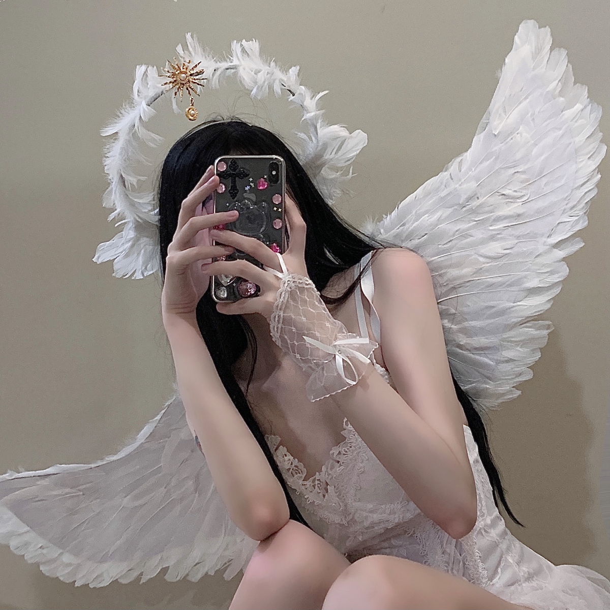 白色天使精灵翅膀羽毛cosplay万圣节圣诞节服装饰女穿搭套装道具