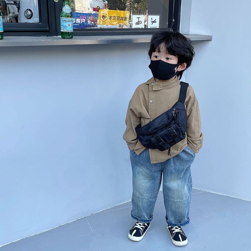 2023韩版男童斜挎包时尚潮酷网红腰包外出大容量女孩百搭零钱胸包