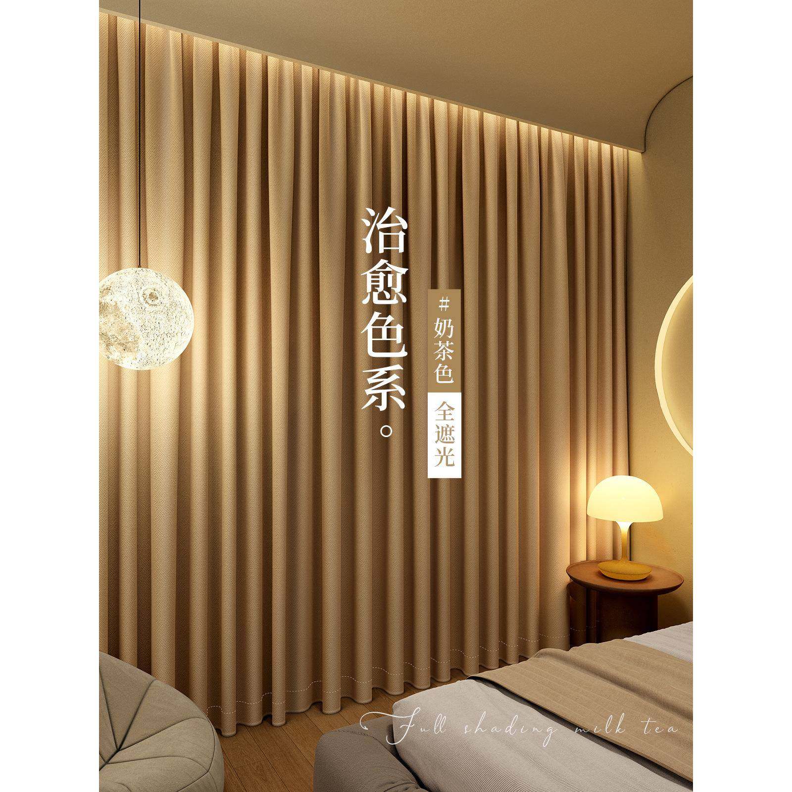 卧室成品窗帘全遮光2024新款客厅奶油风2024免打孔安装感布挂钩式