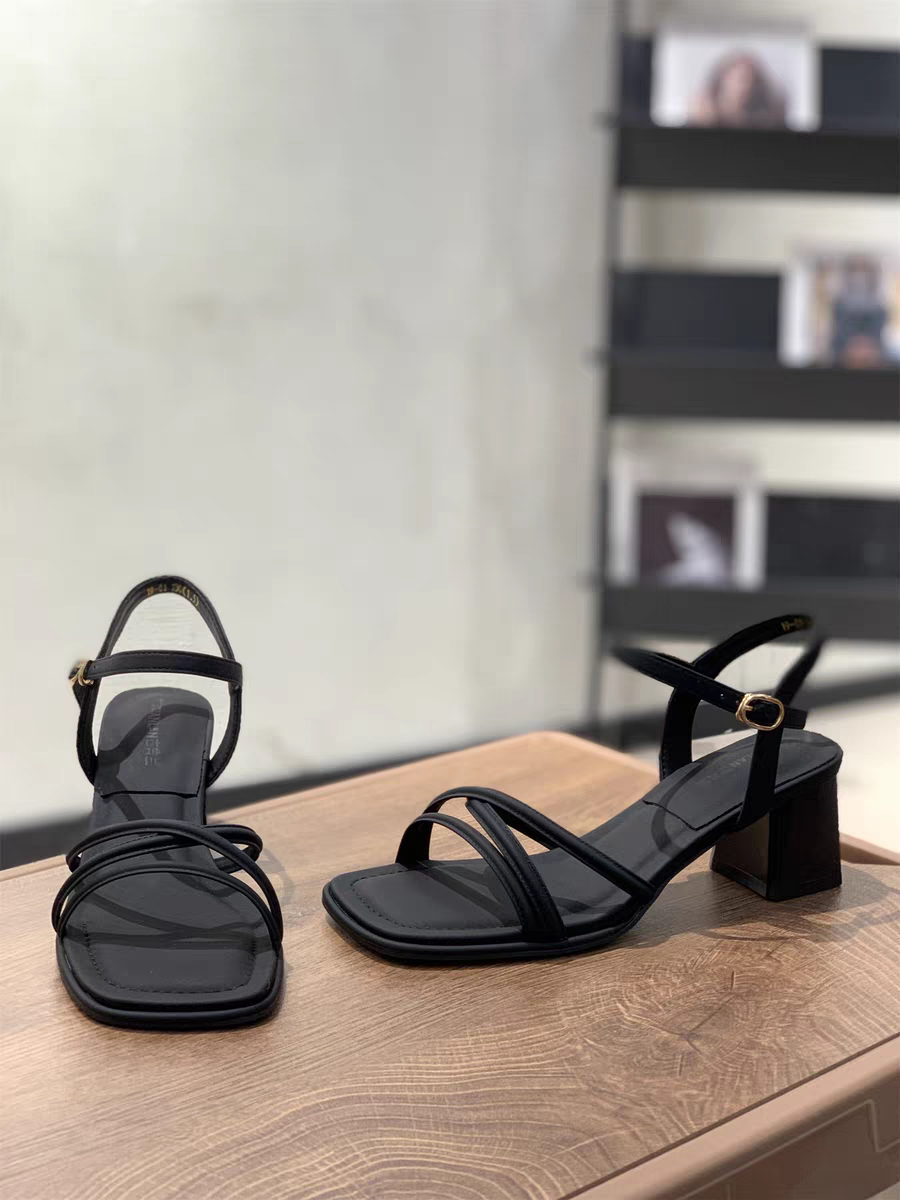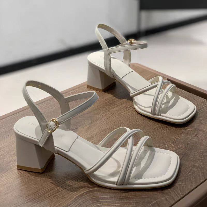粗跟仙女风凉鞋女2025夏季款时尚中跟一字扣带法式气质露趾高跟鞋
